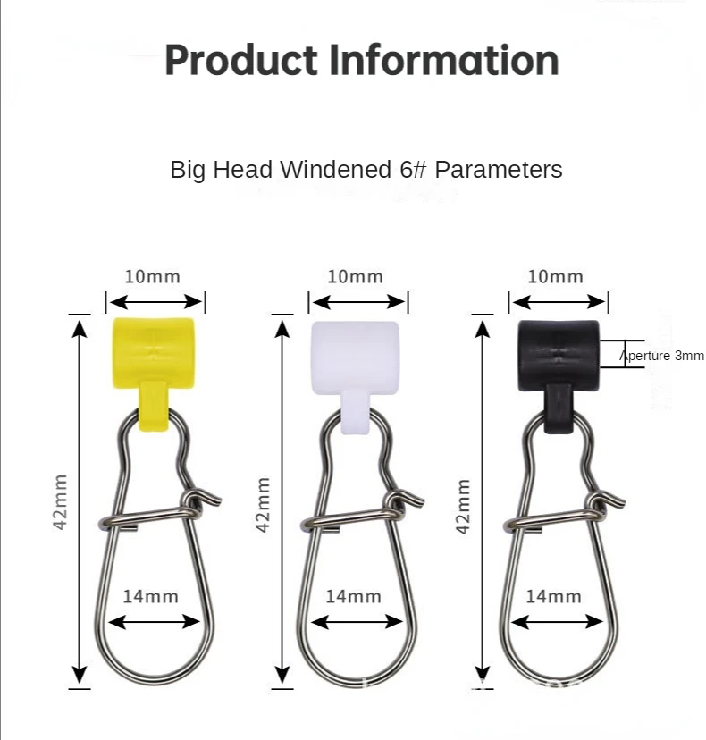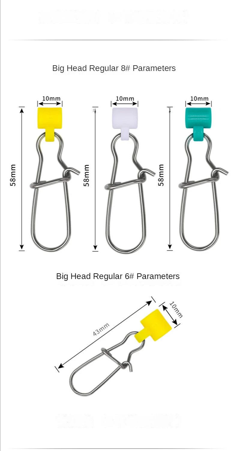 Características: 1. Broche enganchado hecho de acero inoxidable con níquel plateado. Diapositivas de plomada ABS versión mejorada incorporada en pieza 2. Presenta resistencia a la corrosión, resistencia a la abrasión, funciona con trenzas resistentes en agua dulce y salada 3. Cambio rápido. Permite cambiar pesos y varios líderes en segundos 4. Ideal para cualquier equipo que necesite peso de eslinga. Tales plataformas de catfish, plataformas estriadas, plataformas de surf y arrastre de aguas profundas 5. Desliza con broches enganchados y de doble bloqueo en una variedad de combinaciones para satisfacer tus diferentes necesidades de tamaño.