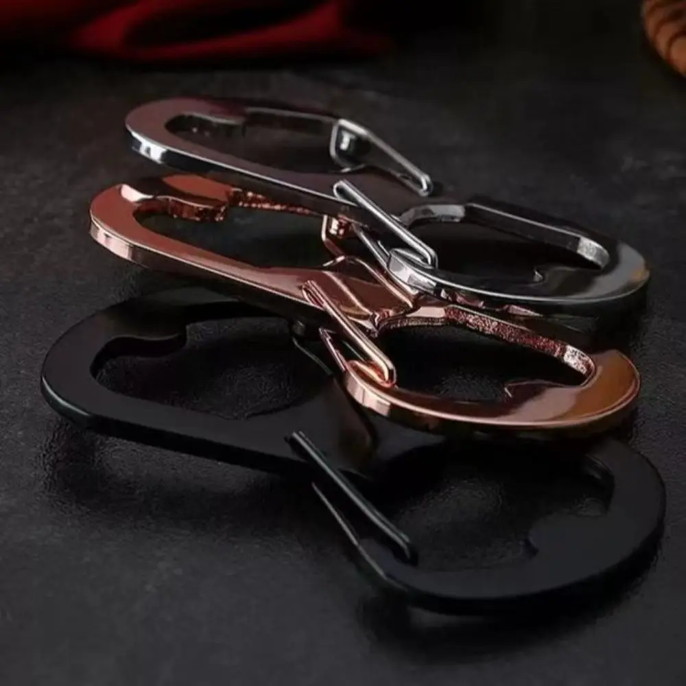 Embalaje: 1 pieza de mosquetón en forma de 8 Hebilla clásica de 8 palabras, tome una estructura sólida de doble hebilla, pero también con la aplicación de multifuncional, abridor de botellas, hebilla de montañismo, hebilla para llaves, dispositivos portátiles, lo que significa que lleva 8 abridores de letras, No importa cuándo y dónde, puede beber una botella deliciosa, dejar que la gente alrededor envidie.