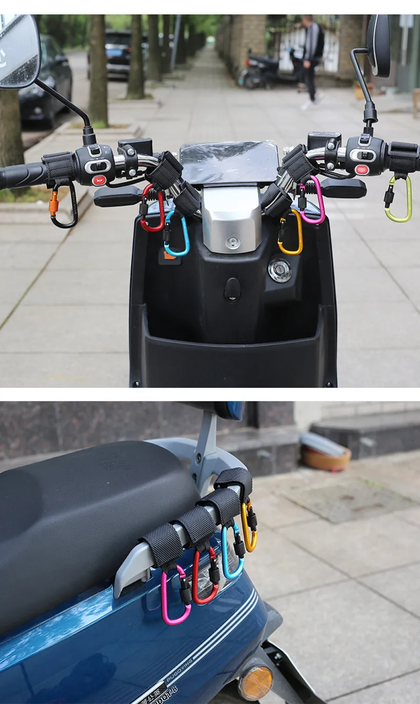 Mosquetón de aleación de aluminio para bicicleta eléctrica, palo mágico fuerte multifunción Universal, gancho para cochecito en forma de D, atrevido con cerradura