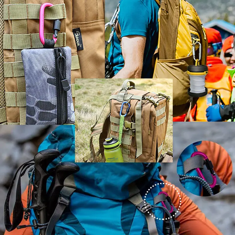 Puedes colgarlo en la mochila, llavero, hervidor y todo y en el lugar donde lo necesiten, y puedes usarlo para tiendas de campaña, cuerdas, etc., elegante y práctico.