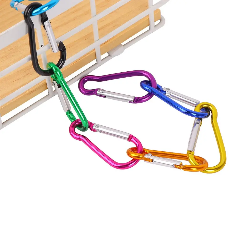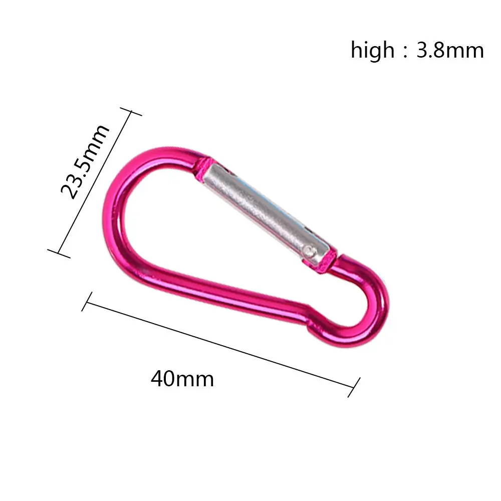 Forma: tipo calabaza Material: aleación de aluminio Especificación: 3,8mm * 48mm Peso: 3,5g Color: AlEAtorIo Tratamiento de la superficie: proceso de oxidación Aplicación: ligero, sin decoloración, resistente al desgaste, barato, ampliamente utilizado en equipaje, juguetes, botellas de agua, mochilas, llaveros, etc. El paquete incluye: mosquetón de 10 piezas