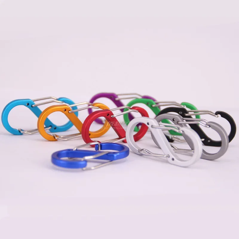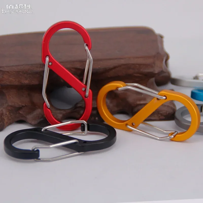 Mosquetón de aleación de Zinc tipo S con cerradura, Mini llavero, gancho antirrobo, mochila de Camping al aire libre, hebilla, accesorios de bloqueo de llave, 50mm