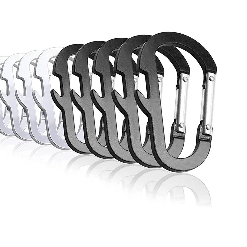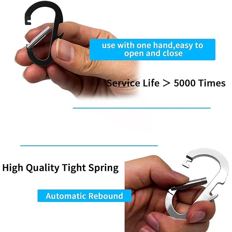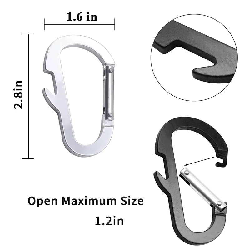 1. Material Superior: Los clips mosquetones están hechos de aleación de aluminio, nunca se oxidan.