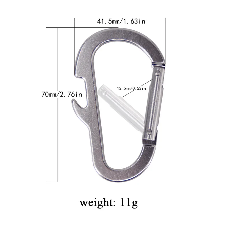 3. Tamaño del producto: La longitud del tamaño del mosquetón es de 2,75 pulgadas, suficiente para satisfacer las necesidades de la vida diaria.
