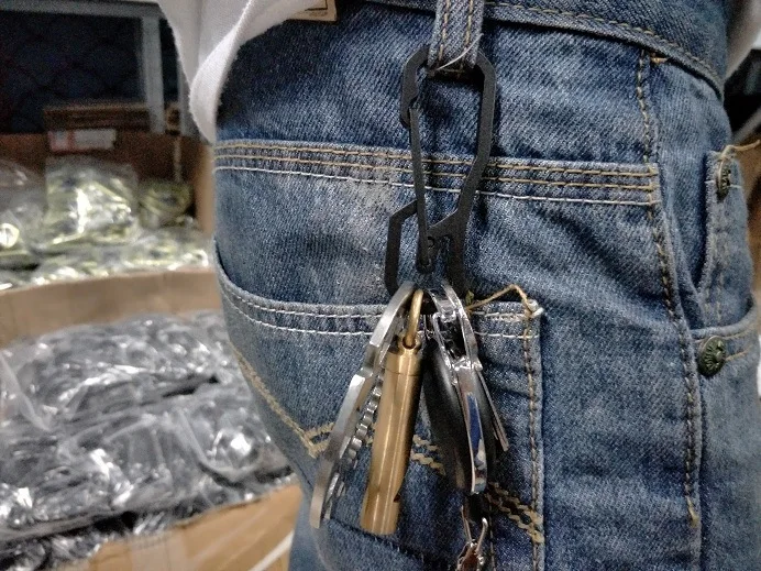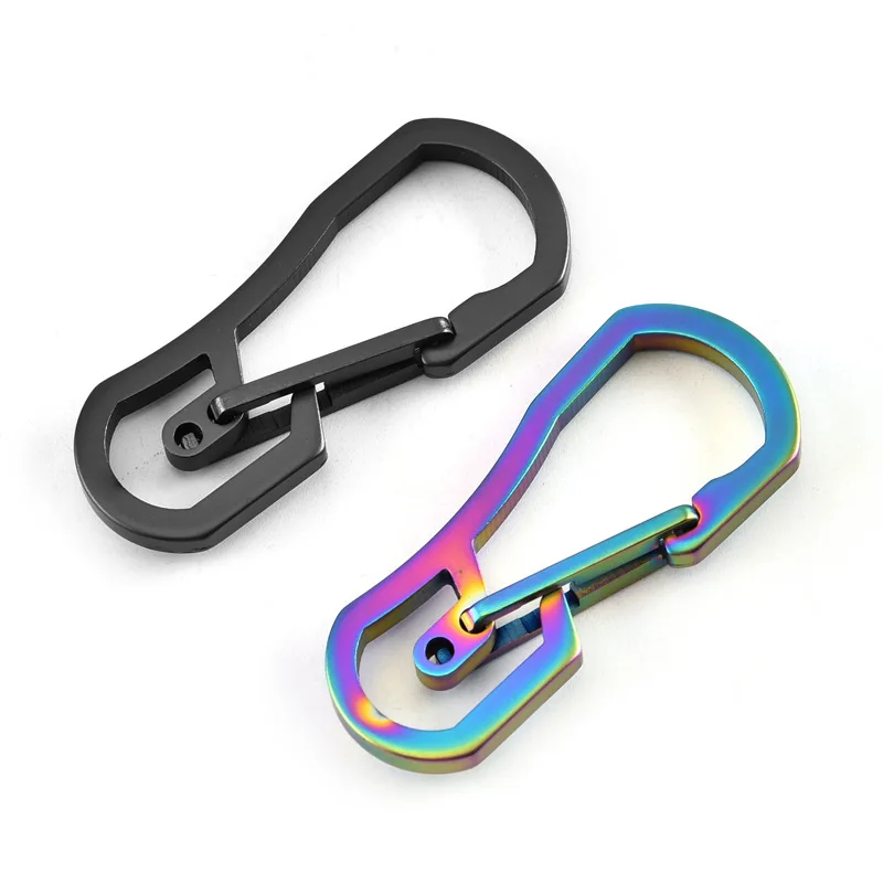 Mosquetón chapado en titanio, Clip para acampar, llavero para exteriores, soporte para llavero, llavero para acampar, mosquetón con gancho con hebilla colgante