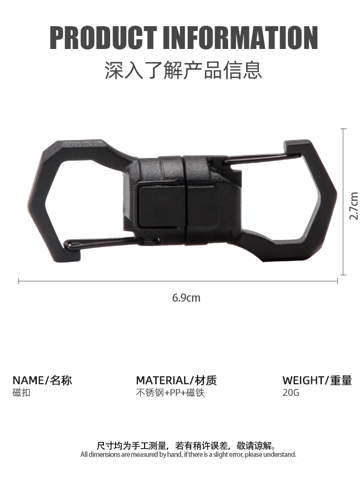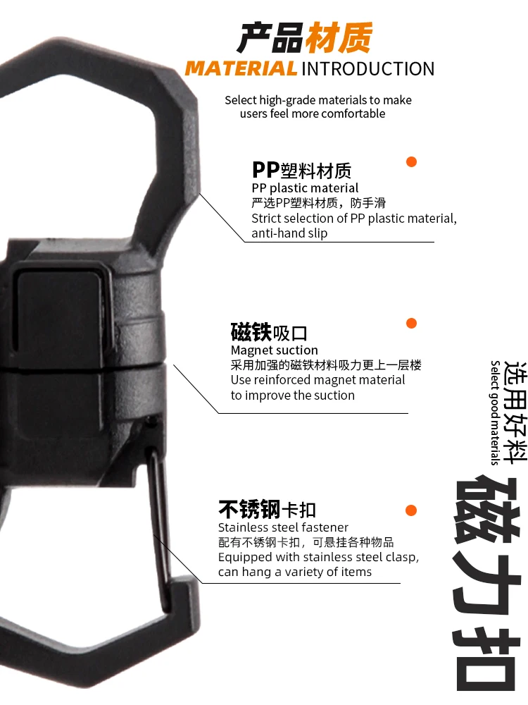 Mosquetón magnético fuerte, llavero de mosquetón de acero inoxidable para acampar al aire libre, escalada, Clip de bloqueo, hebilla, gancho de pesca, 1 Uds.