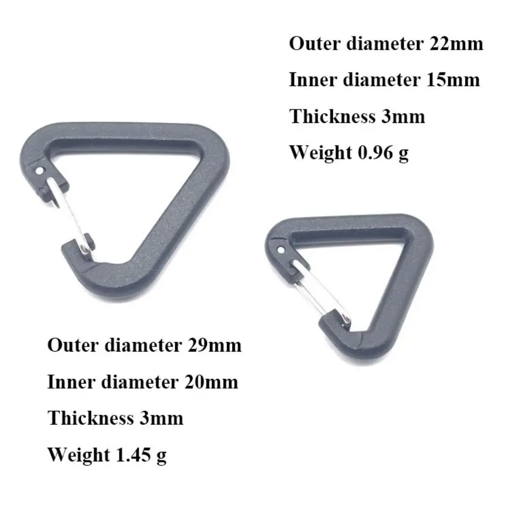 Nuevo y de alta calidad. Fresco, diseño novedoso, uso duradero. Diseño de clip de enlace de resorte. Ideal para mosquetón, camping, senderismo, actividades al aire libre. Material: plástico. Tamaño: Diámetro interior 15mm (0,59 pulgadas)/20mm (0,79 pulgadas) Color: Negro Forma: Triángulo Cantidad: 10 Características de la piezas: 1. Material plástico, peso ligero y fácil de usar. 2. Alta resistencia, resistencia al desgaste y durabilidad. 3. Se puede colgar en una mochila, llavero, tetera. Etc. El paquete incluye: mosquetón con hebilla triangular de 10 0,39. Aviso: 1. Transición: 1cm=10Mm=pulgadas. 2. Permita un error de 1-2MM debido a la medición manual y asegúrese de que no le importe antes de realizar el pedido. 3. Por favor, comprenda que los colores pueden existir aberración cromática debido a la diferente ubicación de las imágenes.