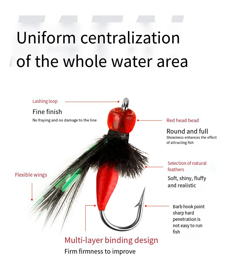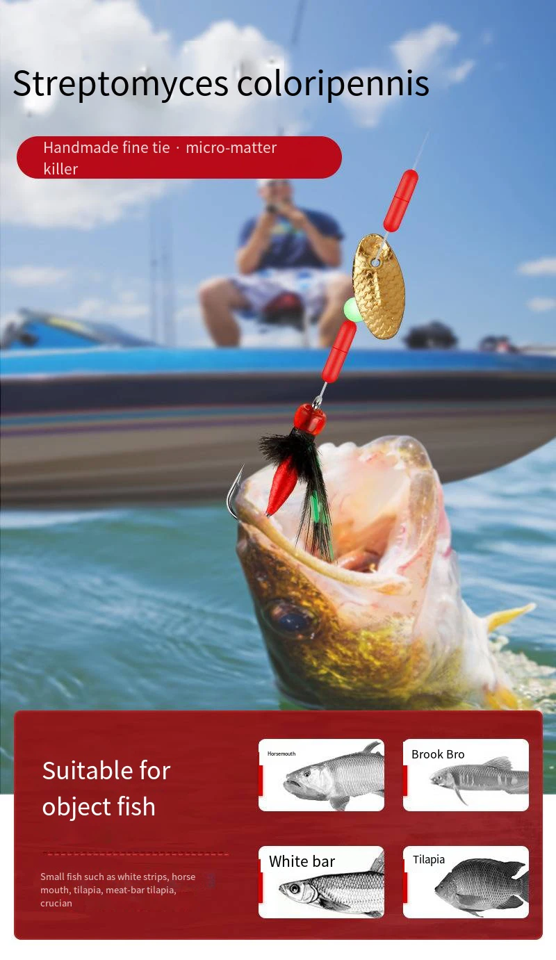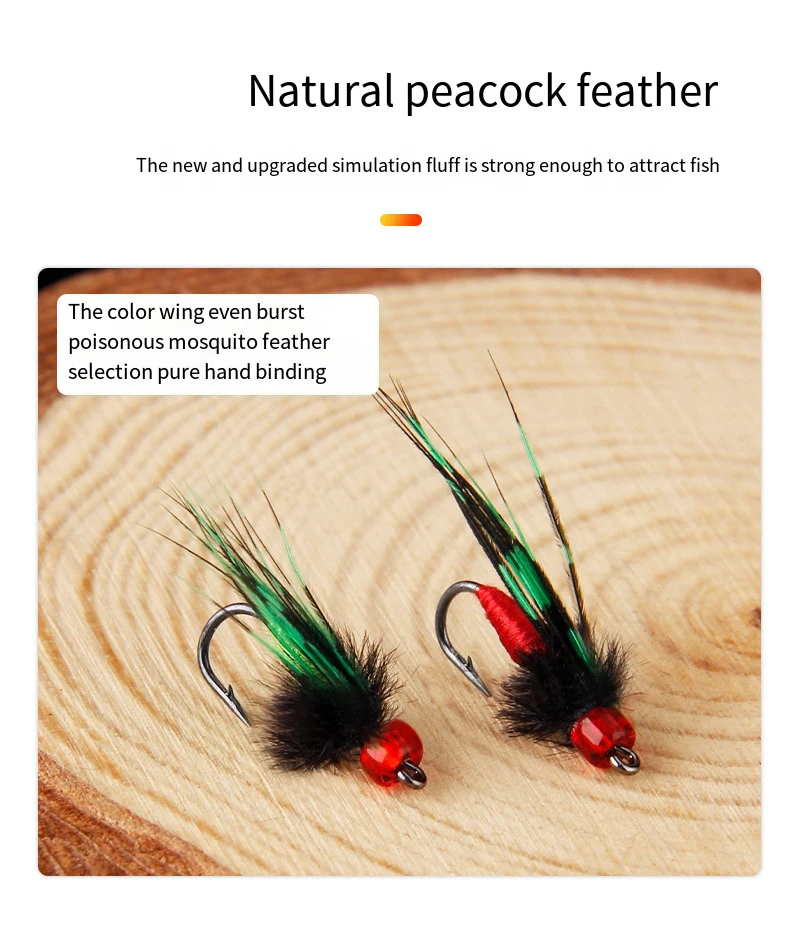 El cebo biónico para abejas es un cebo para moscas, que es diferente al cebo señuelo.El cebo en sí está hecho de plumas, fibras y similares.El peso es muy ligero y no es adecuado para lanzar tiros directamente.Además de la pesca y lanzamiento con mosca profesional, también puede usar el hilo de nailon transparente detrás del señuelo de carretera o usar una caña de pescar para morder el lanzamiento de plomo.