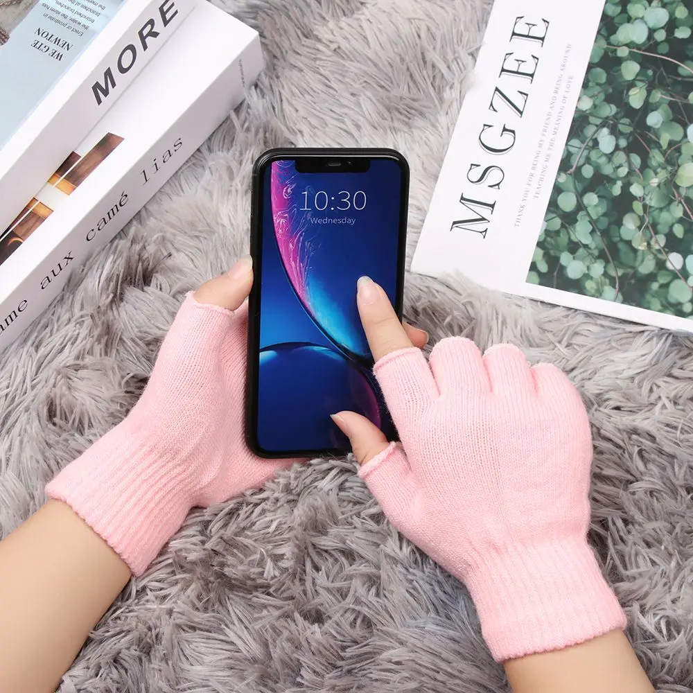 Ocasión: deportes al aire libre, conducción, vida diaria. Estos son guantes tejidos de medio dedo para el invierno.
