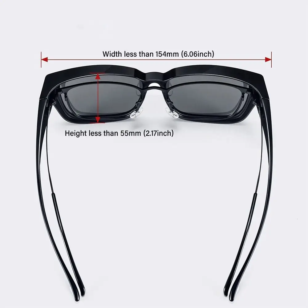 Product Name: Fit Over Glasses Sunglasses Style: Trendy, Retro Fashion Color: Shiny Black, Sand Black, Clear Gray, Clear, Night Vision Black, Night Vision Clear Lens Material: Polycarbonate/TAC Frame Material: PC Polarization Type: Non-Polarized/Polarized Package Included: 1 x Sunglasses Note: 1. There is a 2-3% difference according to manual measurement. Please check the size carefully before you buy the item. 2. Please note that a slight color difference should be acceptable due to the light and screen.