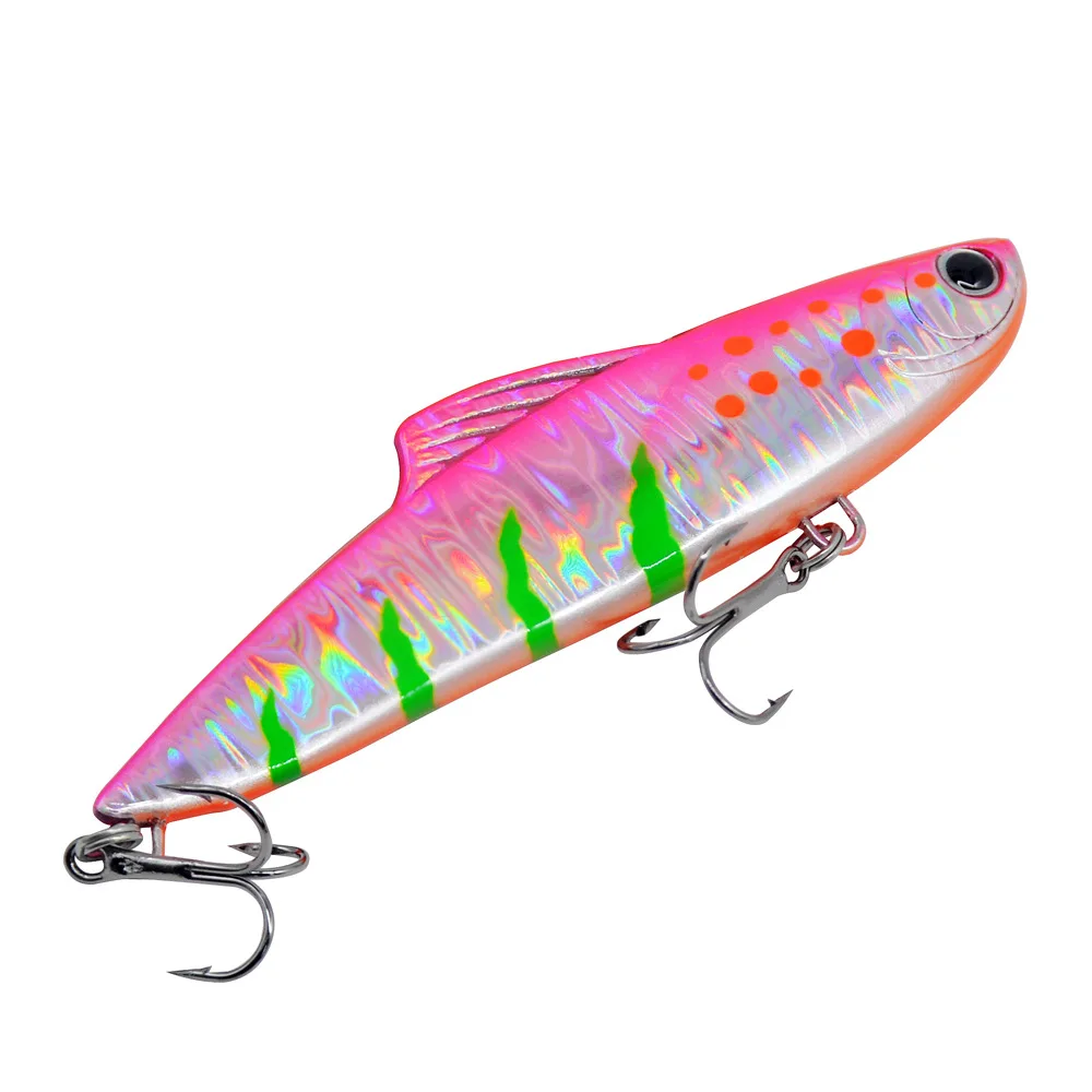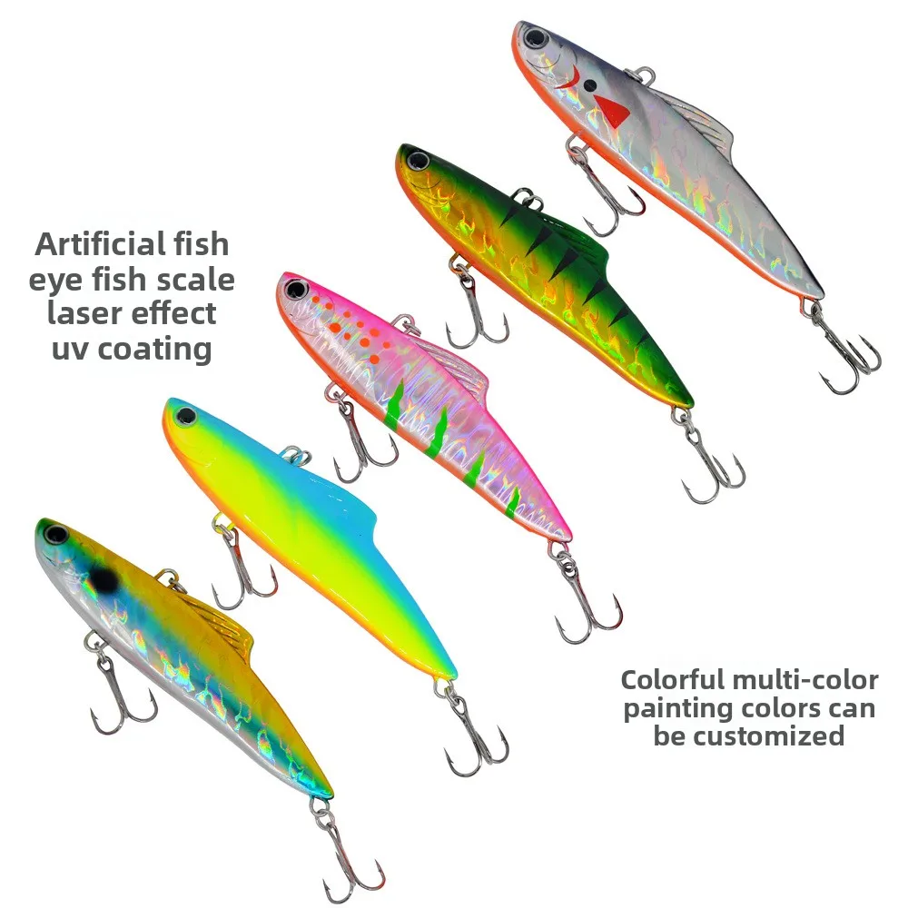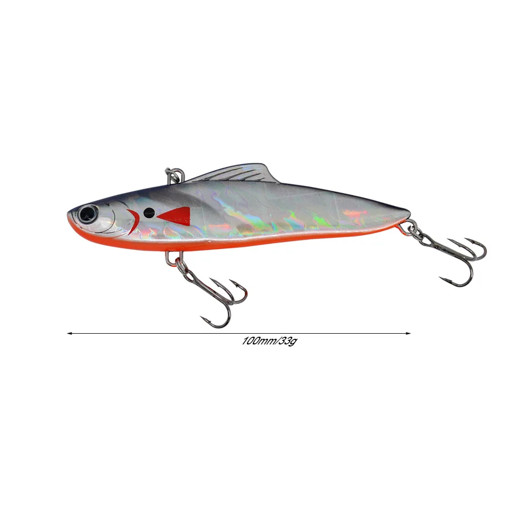 MUKUN 1 Uds 33g señuelo de Pesca de mar duro de invierno VIB ojos de cebo 3D plantilla de buceo giratoria ala Wobbler Pesca manivela señuelos Swimbait