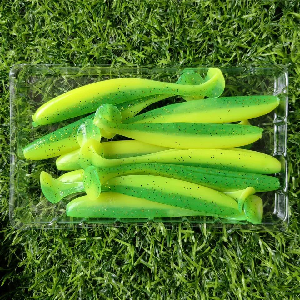 MUKUN 10 Uds 90mm 4,2g T cola gusano señuelos blandos fácil brillo cebos blandos artificiales olor añadido para pesca de lubina Wobblers