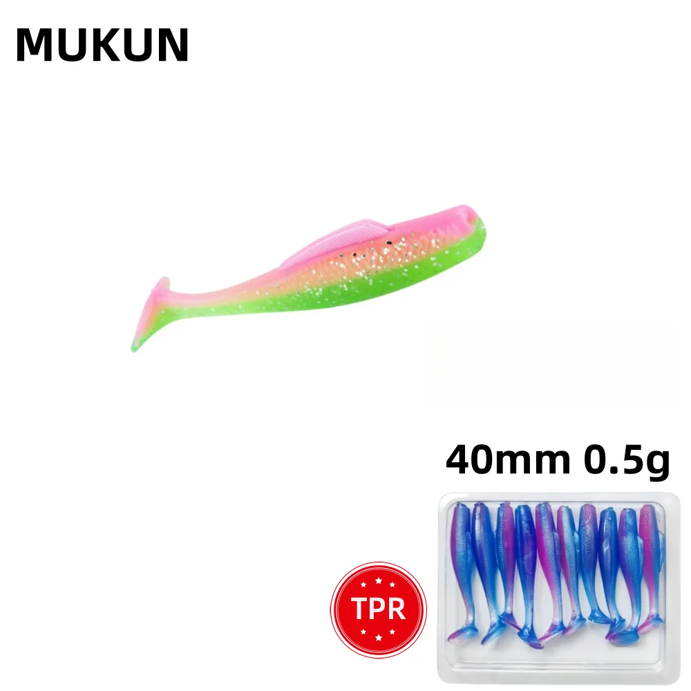 MUKUN 10 Uds MINI cebo blando TPR 40mm 0,5g cola de paleta suave Swimbait Señuelos de Pesca cebo de silicona Artificial Wobblers señuelos blandos