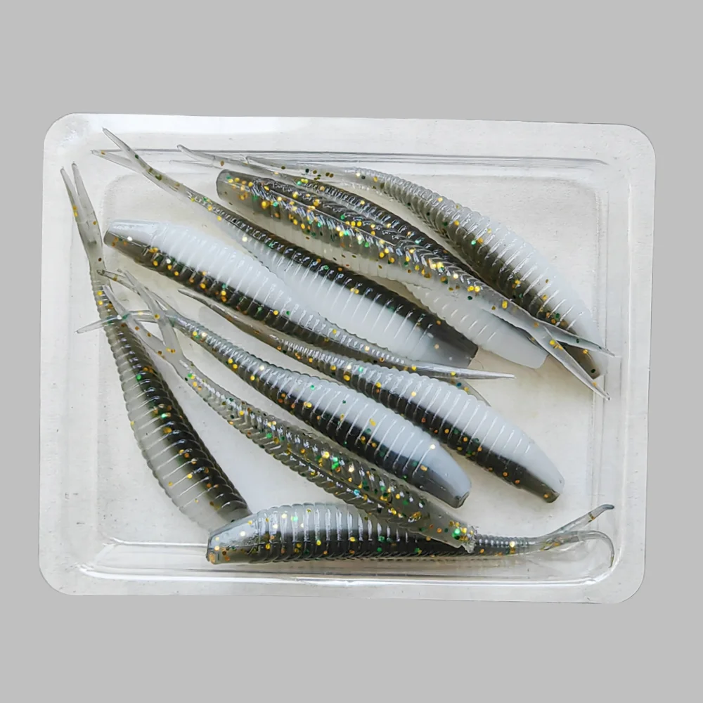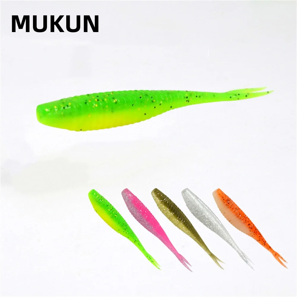 MUKUN 10 Uds. Señuelos blandos de pesca cebos de plástico 5cm/6cm/7cm cola de paleta bifurcada realista Swimbaits de pesca para aparejos de agua dulce