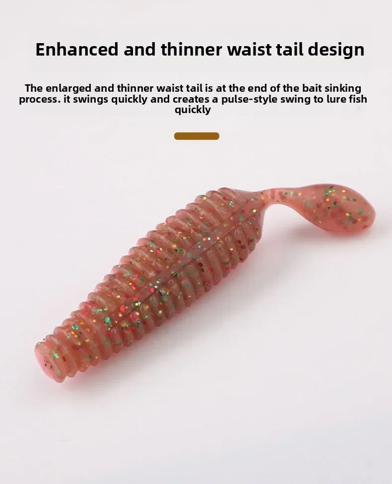 6 unids/lote Swimbait suave 8cm 5,1g flotante cola en T señuelo de pesca TPR cola de paleta Material de señuelo suave cebos de pesca