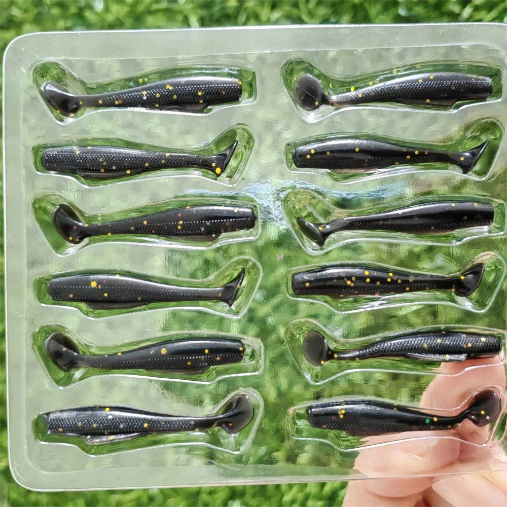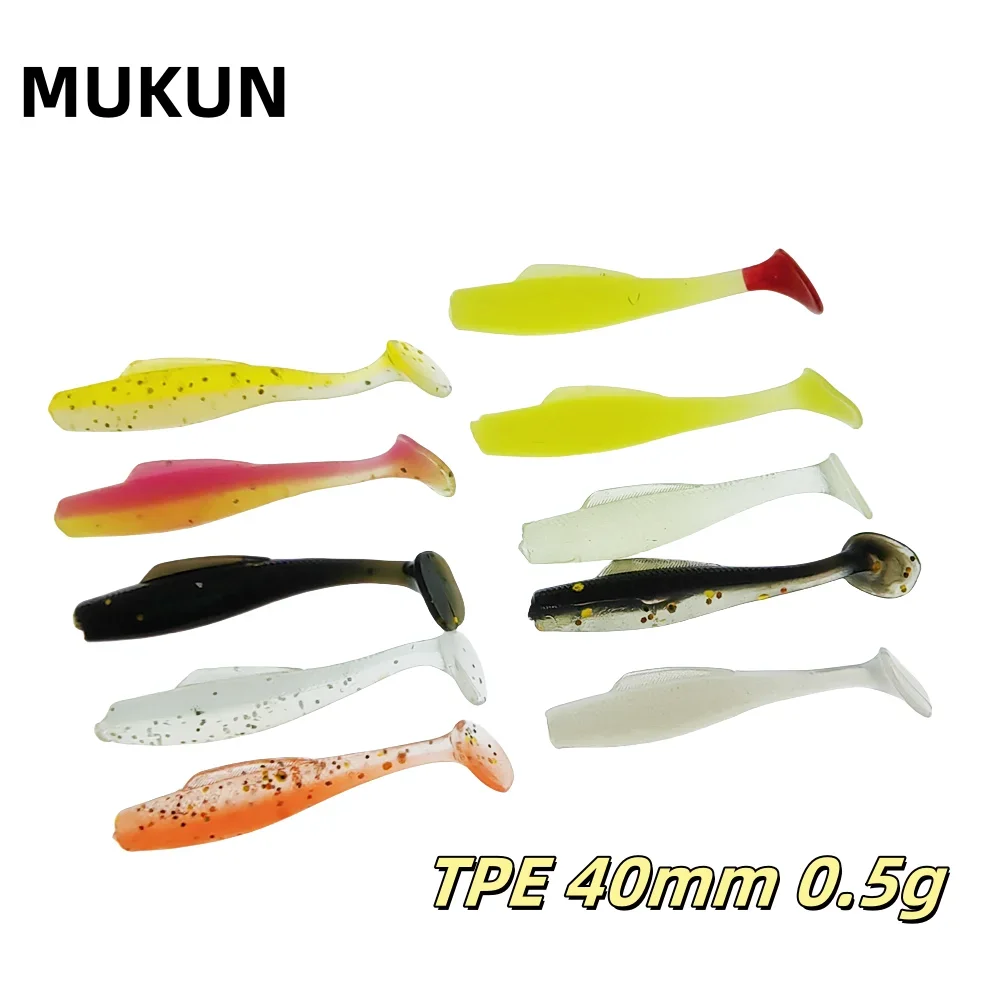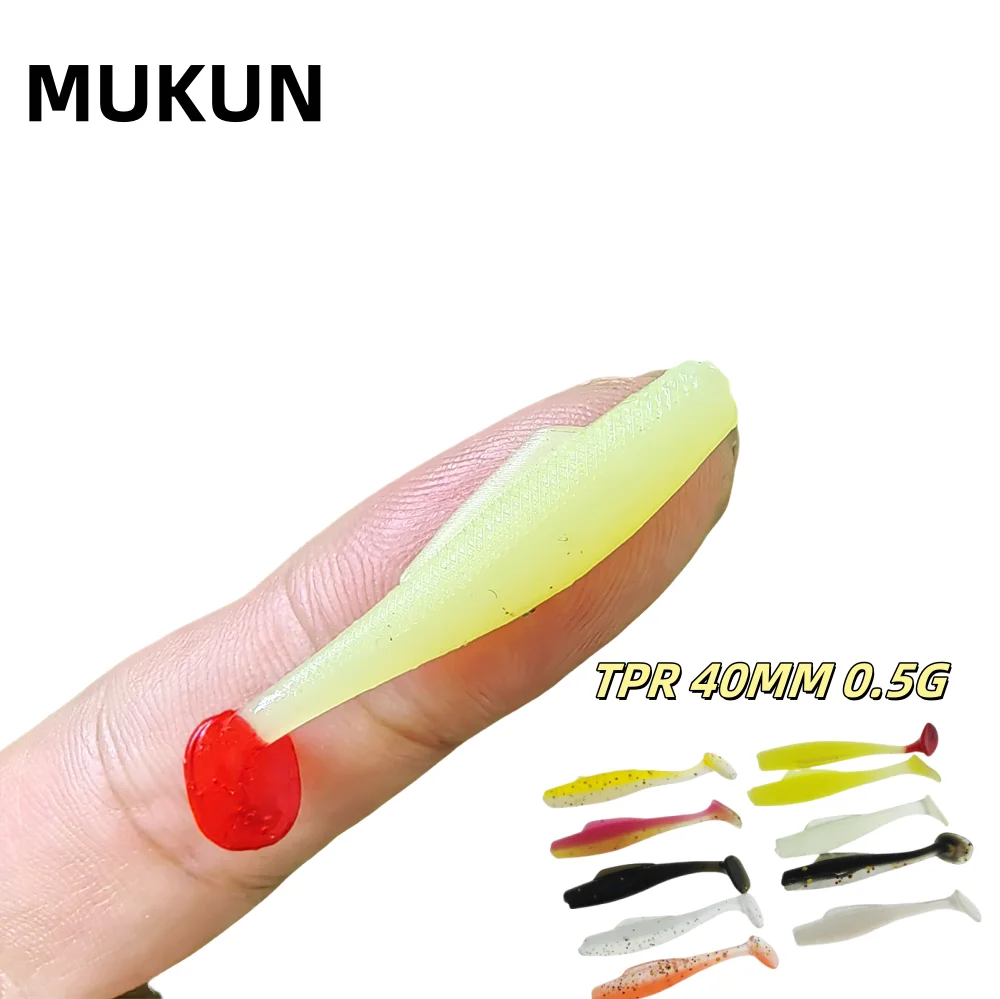 MUKUN 12 Uds TPR flotante Mini señuelo de Pesca suave 0,5g/40mm pequeño cebo Ttail Wobbler Isca Pesca aparejos de Pesca artificiales