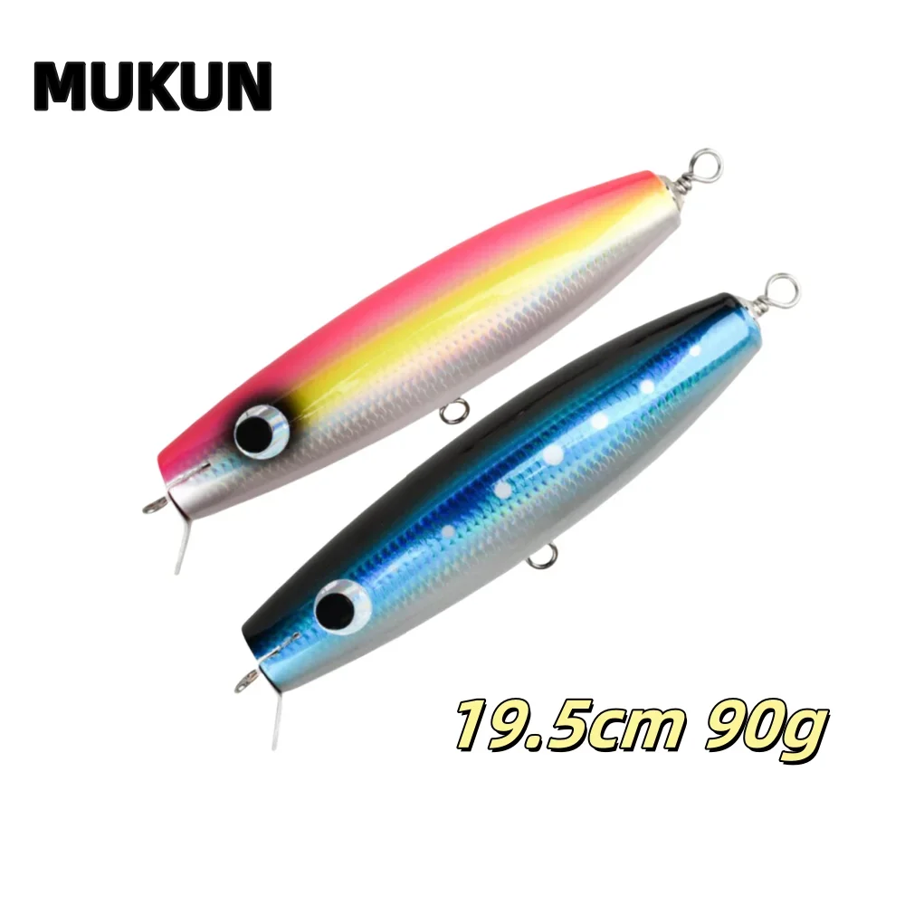 MUKUN 195mm 90g señuelo de pesca de curricán cebo de pesca de agua salada juego grande hecho a mano de madera Topwater GT cebo Woodend minnow señuelo