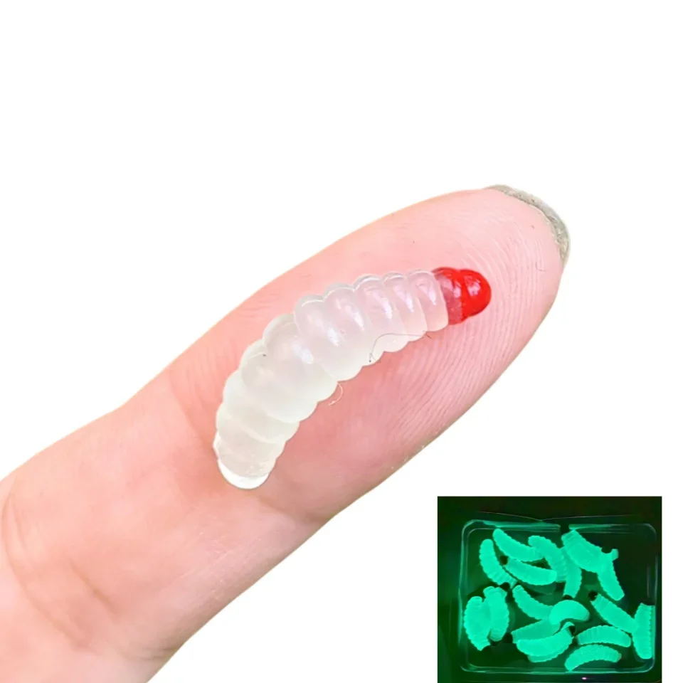 MUKUN 20 piezas 2CM 0,4G señuelo de pesca gusano larva amarillo realista señuelo de pesca biónico pan insecto suave señuelo de pesca gusanos brillo