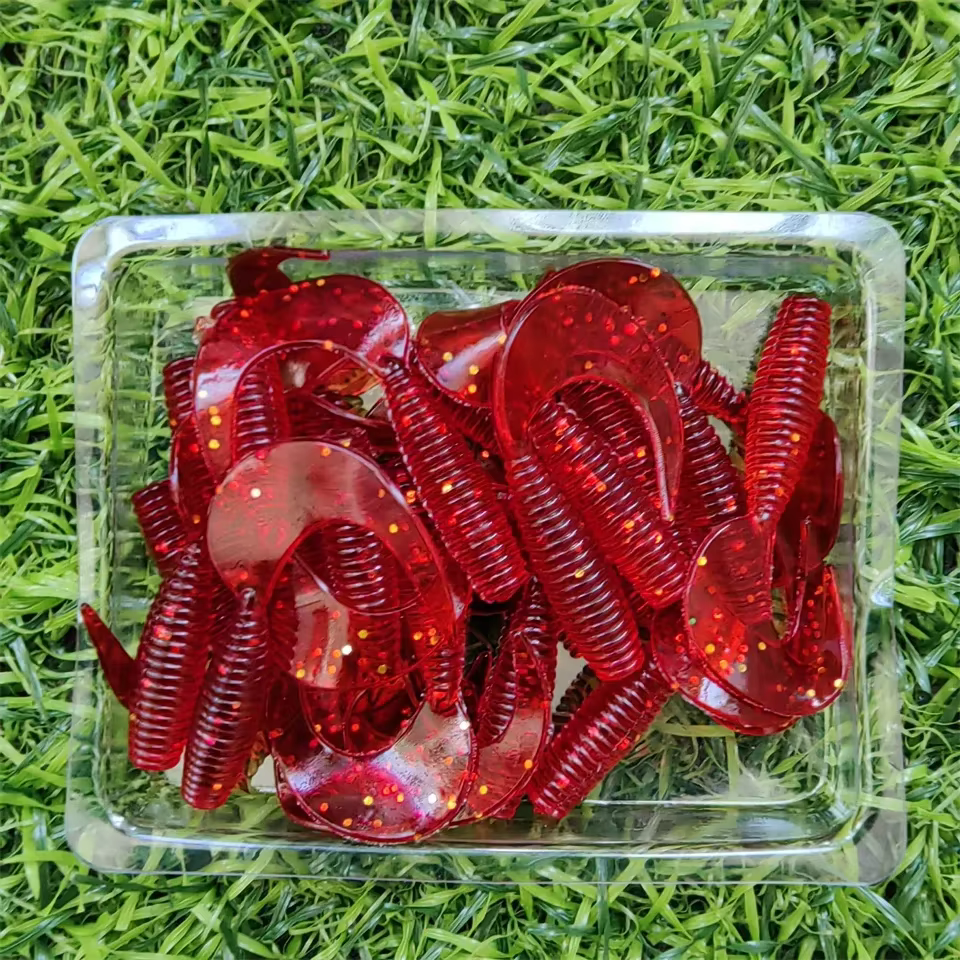 MUKUN 20 piezas 3,5 cm 0,5g cebos blandos de silicona con rizo cola larga cebo de manivela Artificial gusanos falsos Señuelos de Pesca
