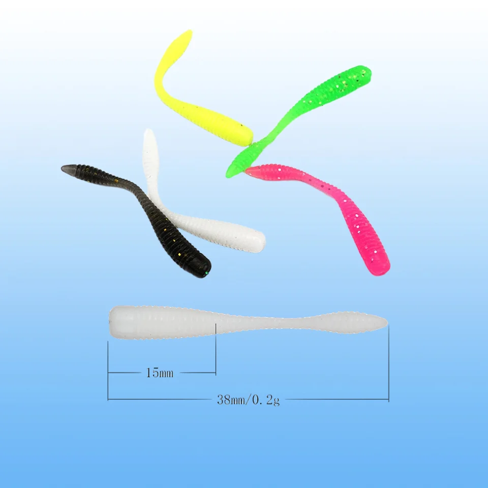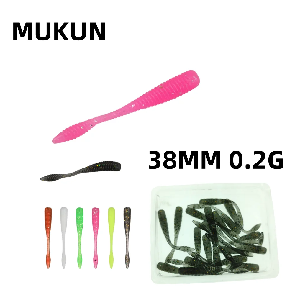 MUKUN 20 piezas Mini señuelo de pesca suave 0,2g/38mm pequeño cebo de silicona Isca plantilla Artificial Wobbler aparejos de pesca de carpa de gusano suave