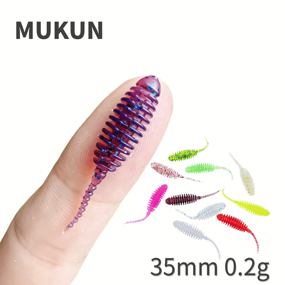 MUKUN 20 piezas nuevo AJING señuelo suave Rockfish Señuelos de pesca 0,2g/3,5 cm MINI cebo Artificial Swimbaits Jig señuelo Wobber gusano aparejos