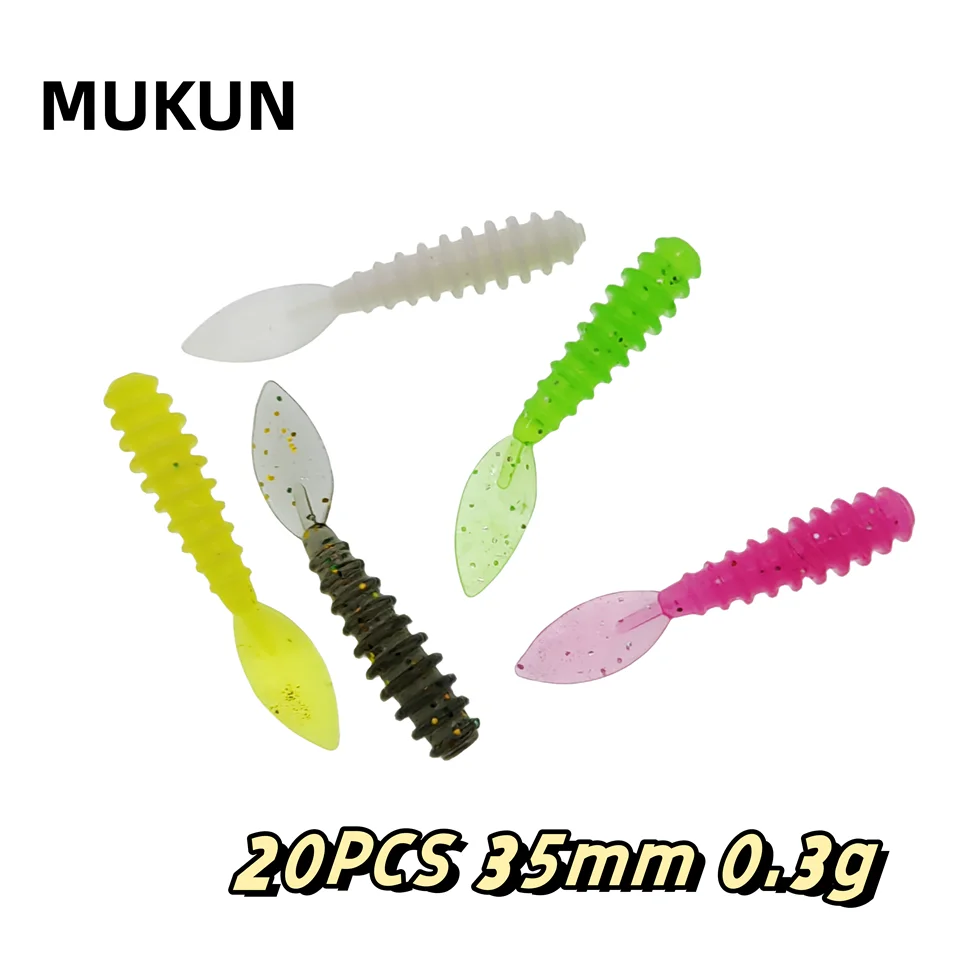 MUKUN 20 piezas Wobblers mini Ocean Rock pesca señuelos blandos cebos blandos de goma 3,5 cm gusano suave cebos artificiales lubina pez de silicona