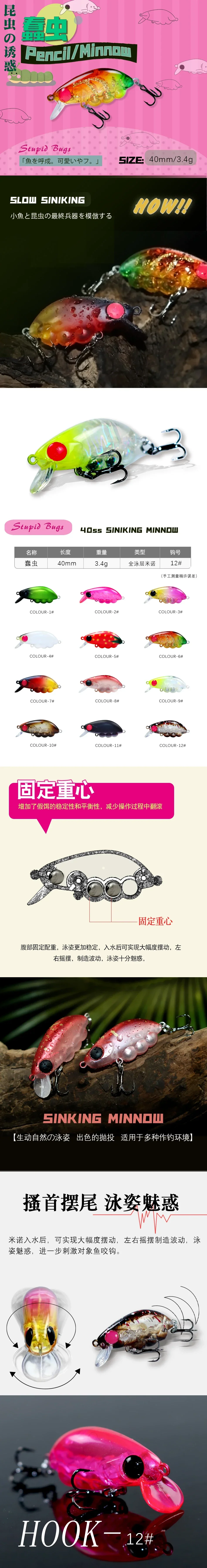 MUKUN 3,4g/40mm señuelo de pececillo que se hunde Mini señuelo de pesca de pececillo lento peso fijo bola de acero gran señuelo de trucha oscilante