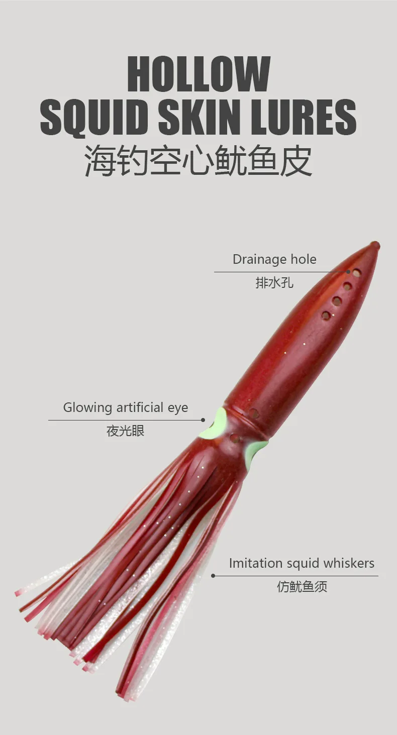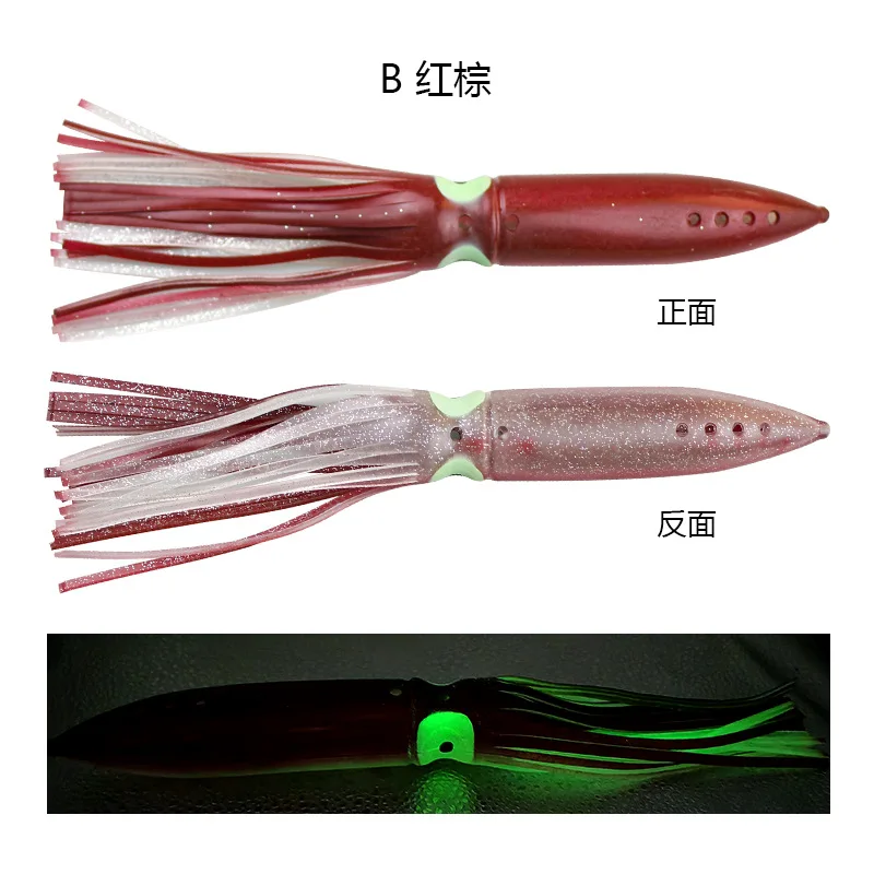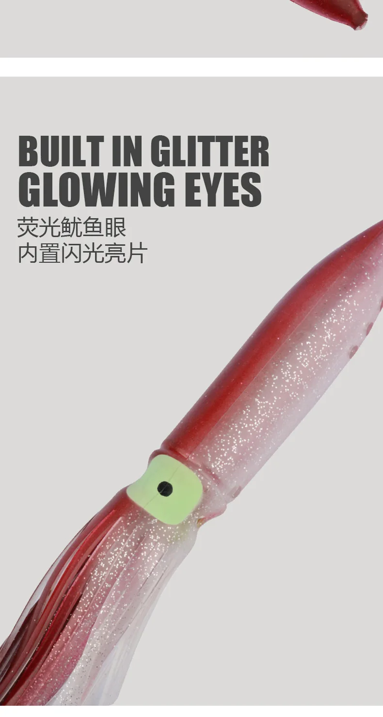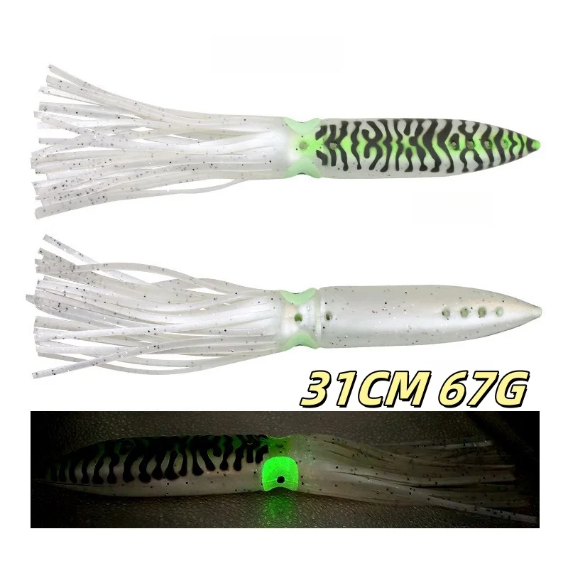 MUKUN 3 uds faldas de calamar y pulpo Señuelos de Pesca 31cm/67 falda luminosa de pulpo cebo de plástico para curricán aparejos de pesca de agua salada