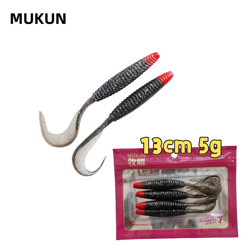 MUKUN 4 Uds TPE señuelo flotante 13cm/5g señuelo suave cebos de gusano cola larga Flexible gusanos de tierra de silicona señuelo de pesca realista
