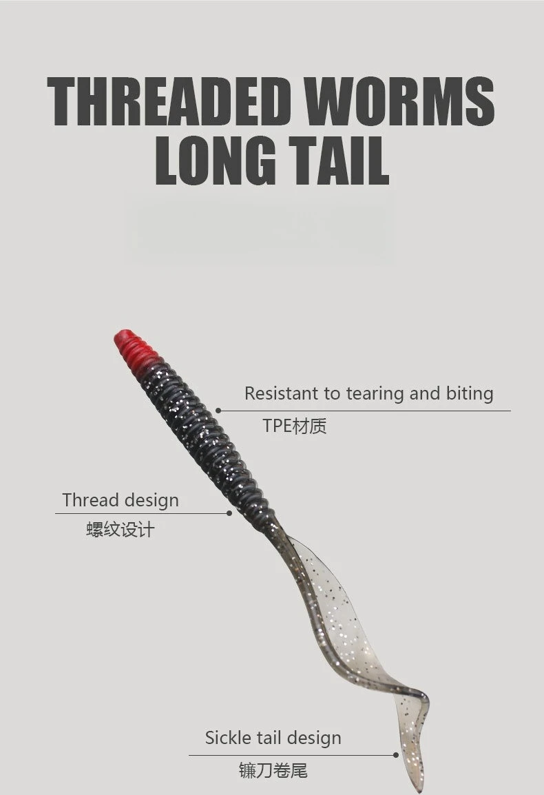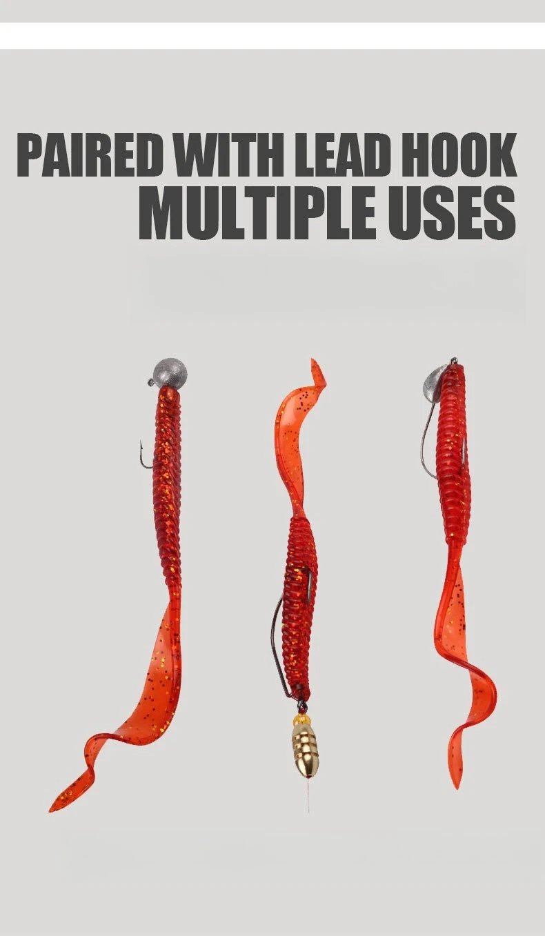 MUKUN 4 Uds TPE señuelo flotante 13cm/5g señuelo suave cebos de gusano cola larga Flexible gusanos de tierra de silicona señuelo de pesca realista