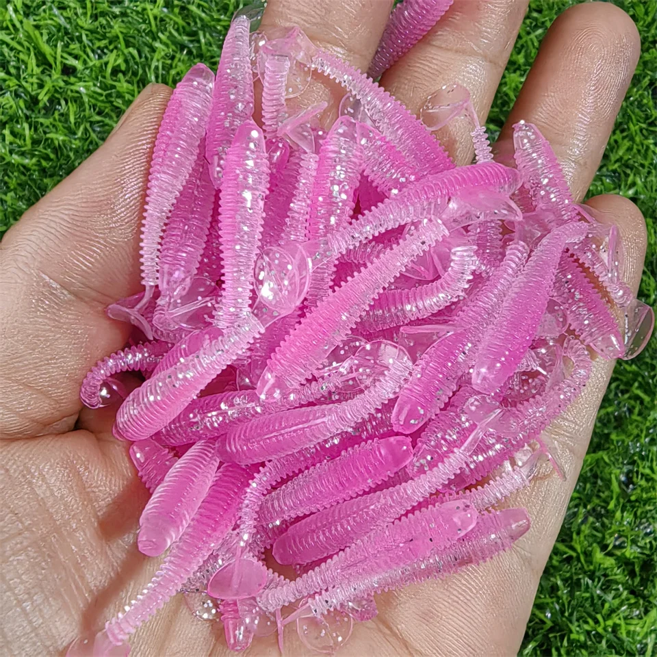 MUKUN 40 Uds Mini señuelo de Pesca suave 0,37g/3,5 cm pequeño cebo de gusano Ttail Wobbler Isca Pesca carpa cebo Artificial aparejos de Pesca