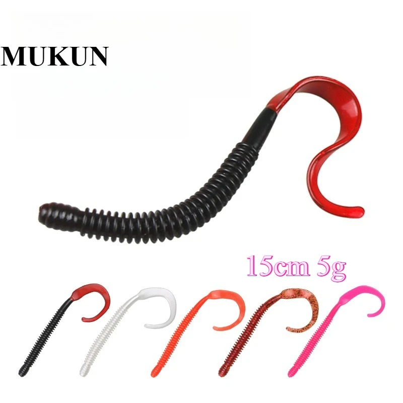 MUKUN 5 uds 14cm 6g cola larga pez silicona cebo suave Jig Wobblers señuelos cebos de goma Artificial lubina Swimbait aparejos de pesca