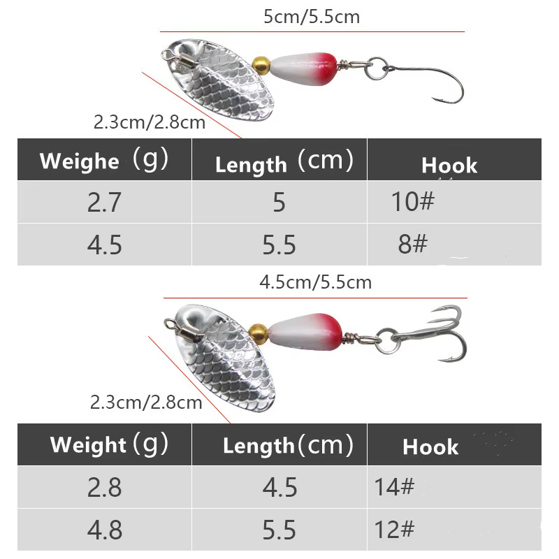 MUKUN 5 uds 2,5g/4,5g Mini anzuelo único señuelo de pesca Micro jigging Spinner cuchara cebo duro Crankbait Spinner aparejos de pesca