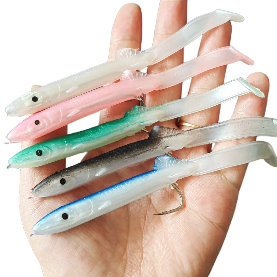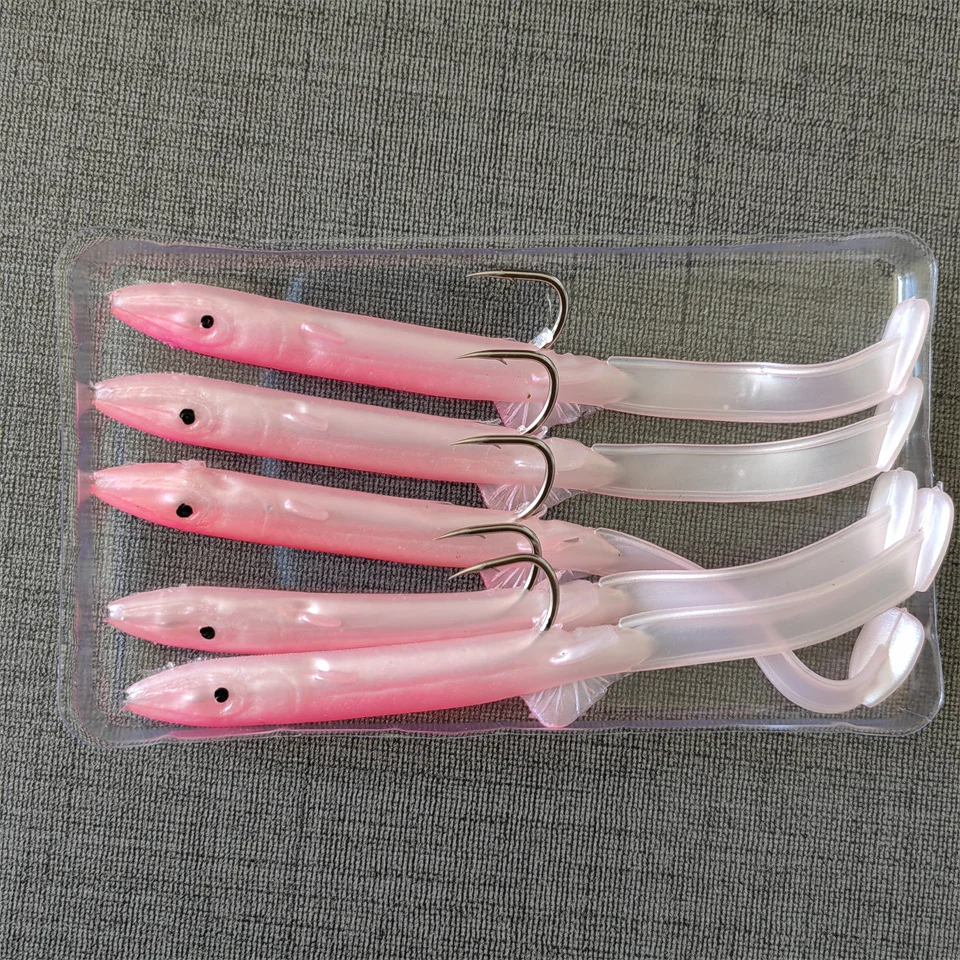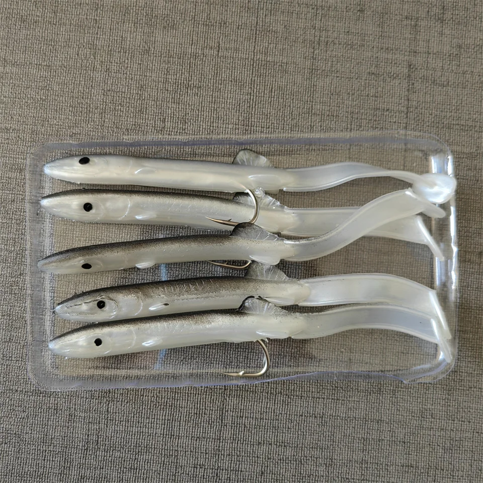 MUKUN 5 uds Anguila Shad señuelo de Pesca 115mm/4g cebo suave con juego de anzuelos afilados para aparejos de Pesca de lubina plomo cebo suave Wobblers Pesca