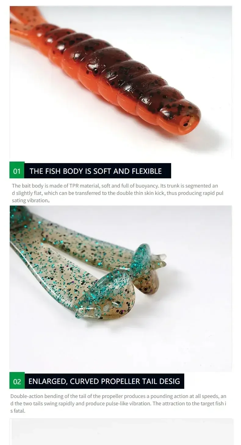 MUKUN 6 uds 7cm 3g TPE dos colas en T cebo suave señuelo de pesca 6 uds cebo de gusano Artificial Wobblers Swim Ned Rig
