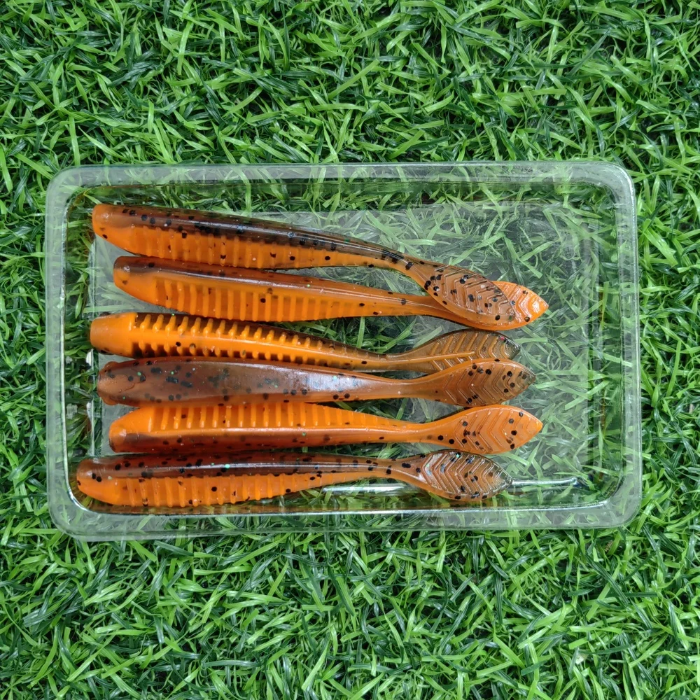 El producto viene muy bien empaquetado y señado, además llegó antes de lo que esperaba, un 10 en este aspecto. Al tacto se siente muy suave y se nota que es de buena calidad, parece que puede durar bastantes salidas de pesca. La goma, aunque al tacto sea suave se ve que es contundente y lo suficientemente flexible para generar buenas nadadas. El anzuelo se pinncha con facilidad, permitiendo anzuelos de tallas grandes y aunque pinche muy bien, no es fácil de romper, es. sumamente elástico y a los peces les costará cortarlo con los dientes. Al estirarse no se aprecian fisuras ni burbujas en el material y tiene una gran elasticidad. Si pescas con este tipo de vinilos, yo los probaría sín dudarlo.
