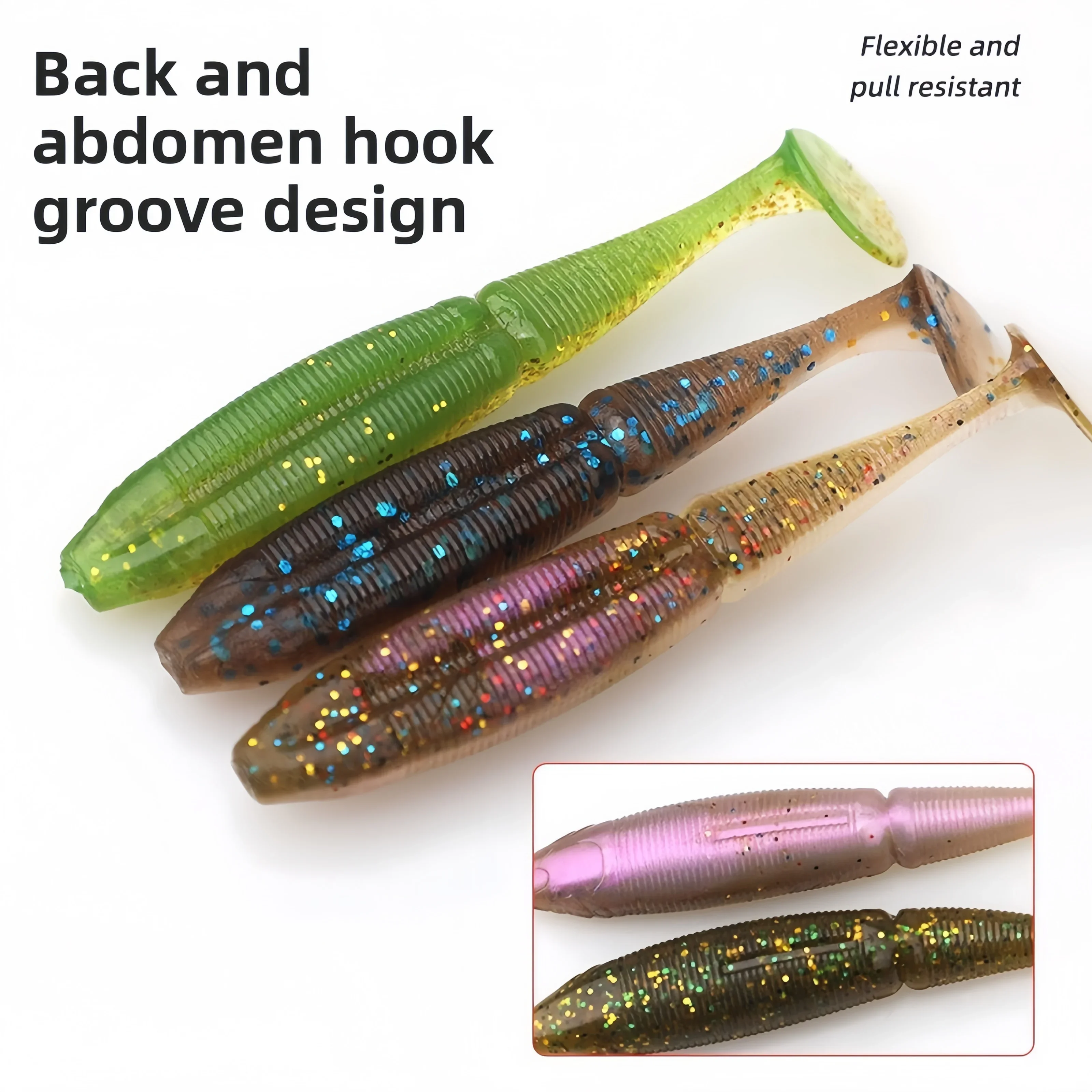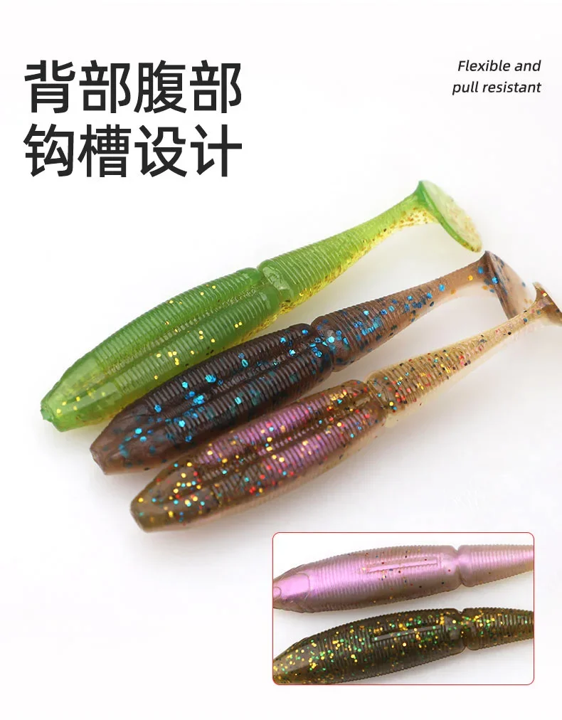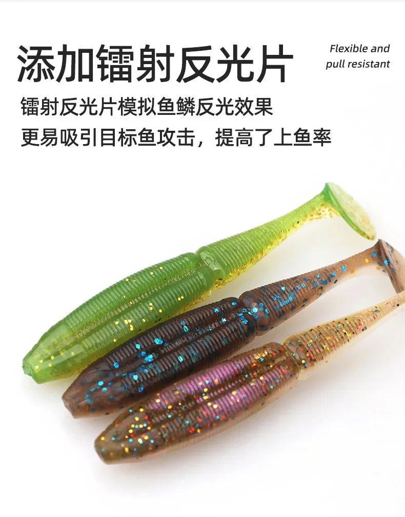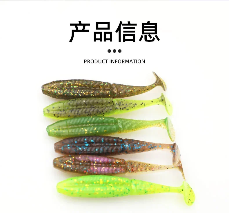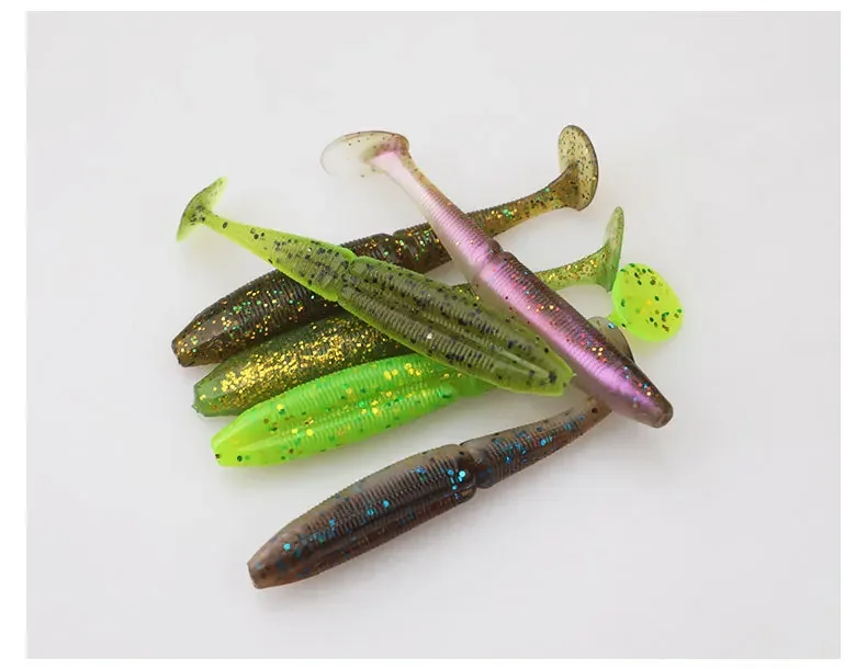 MUKUN 8 Uds señuelo suave cebo 73mm 2,7g flotante cola en T señuelo de pesca material TPE cola de paleta señuelo suave Swimbait aparejos de pesca