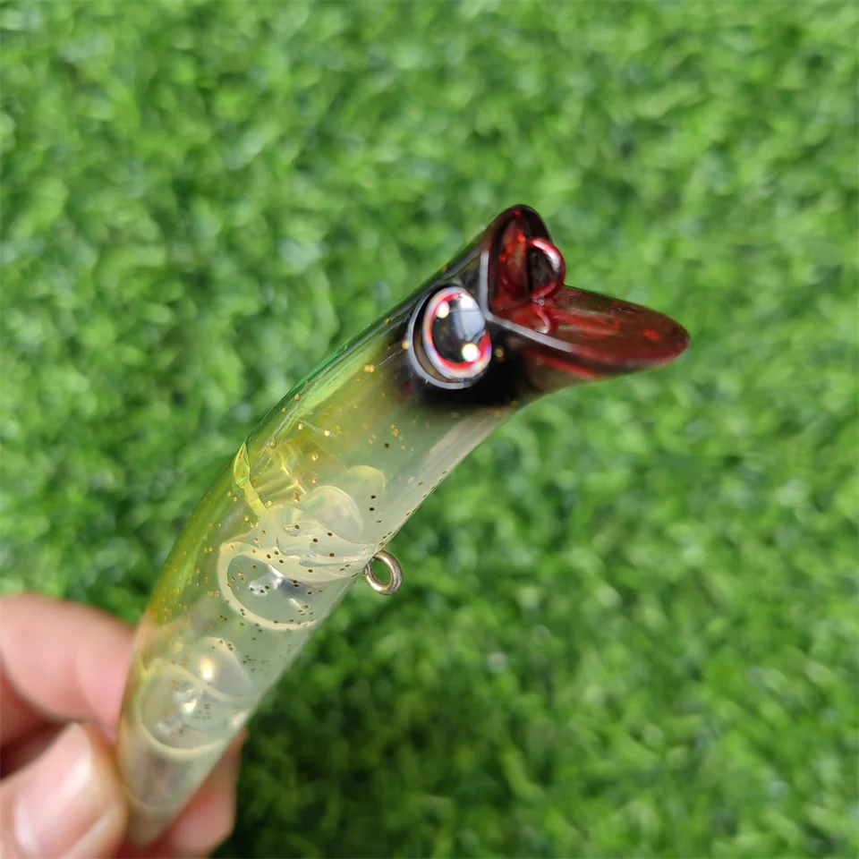 Presenta un elegante perfil de pececillo aerodinámico, una escala realista, con un acabado intermitente reflectante y un patrón que cambia de color, llama la atención de los depredadores y convence a los peces para atacar.