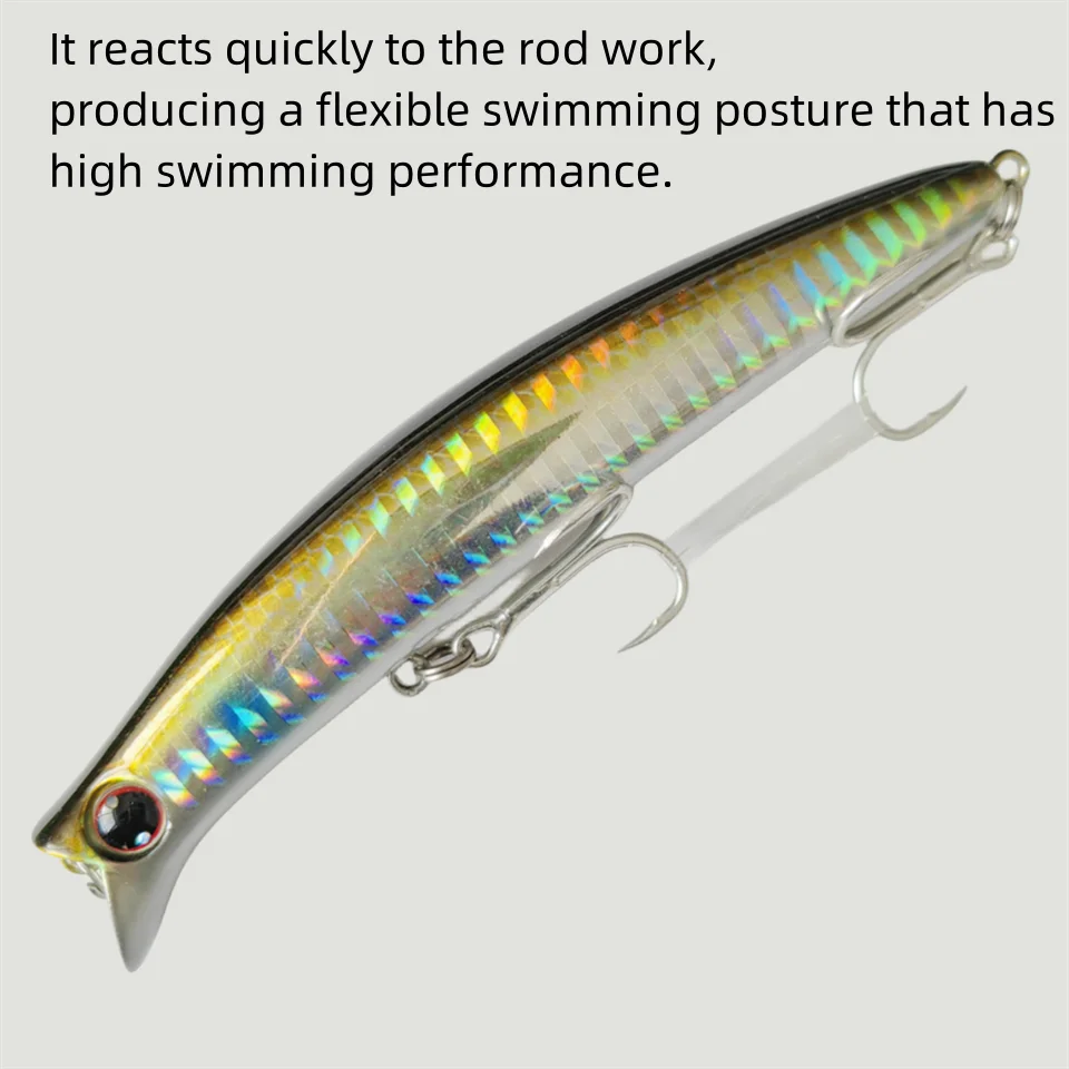 Los señuelos de lubina tienen una bola de gravedad incorporada para una larga transmisión precisa y estabilidad postural y hacen algo de ruido y atraen la atención de los peces.