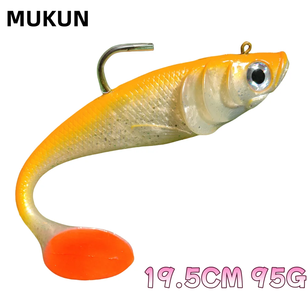 MUKUN 95G cabeza de plantilla suave VIB Trolling Singking silicona PVC para atún Señuelos de pesca de aguas profundas agua salada