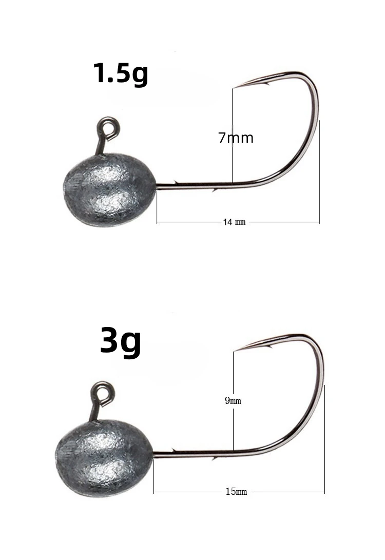 MUKUN-anzuelos de pesca AJING de 10 piezas, 1g, 1,8g, 3,5g, señuelo suave para peces de roca, cabeza de plantilla fina, anzuelo de gusano, varilla ultraligera