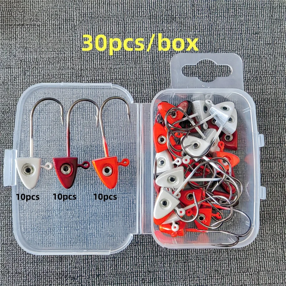 MUKUN-anzuelos de pesca con cabeza plomada, señuelo de 30 piezas y 1,6g, anzuelo de púas, aparejos de pesca, Crankbaits, accesorios de pesca, ojos 3D