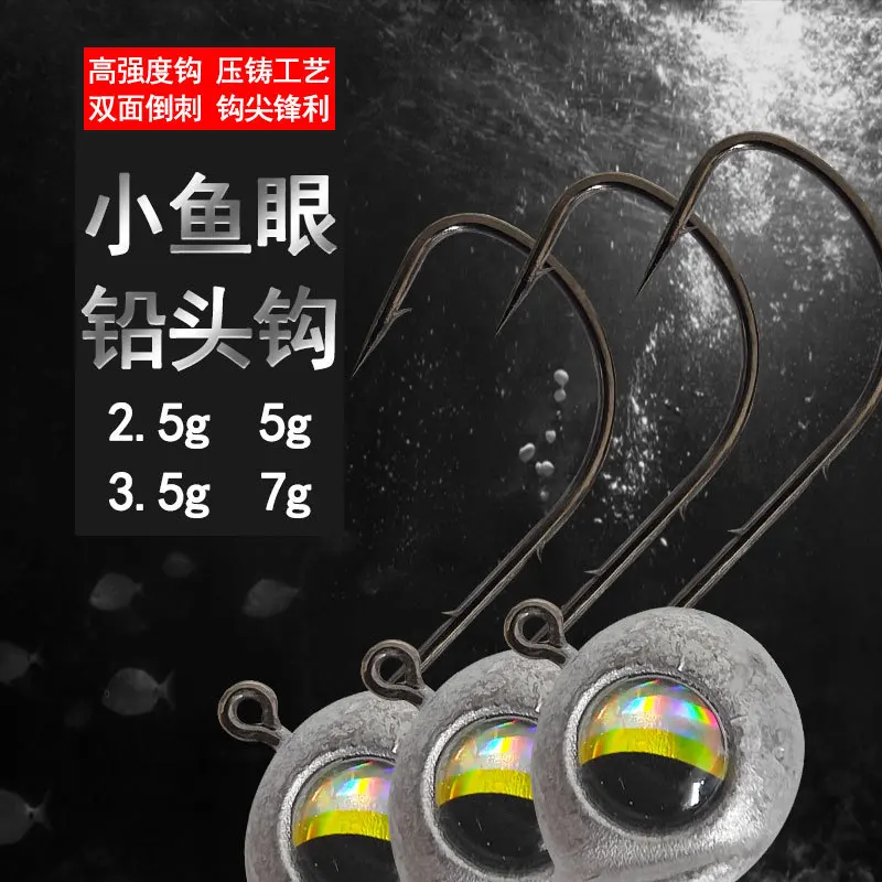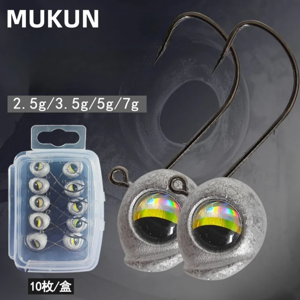 MUKUN-anzuelos de pesca con ojos, cabeza de anzuelo, Rockfish, 2,5g, 3,5g, 5g, 7g, cebo de señuelo, ojos 3D extragrandes, herramienta de pesca ultraligera afilada