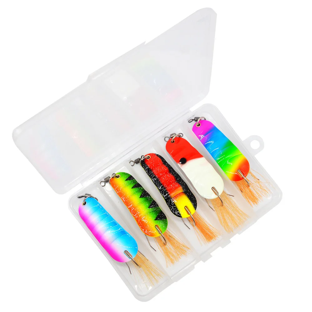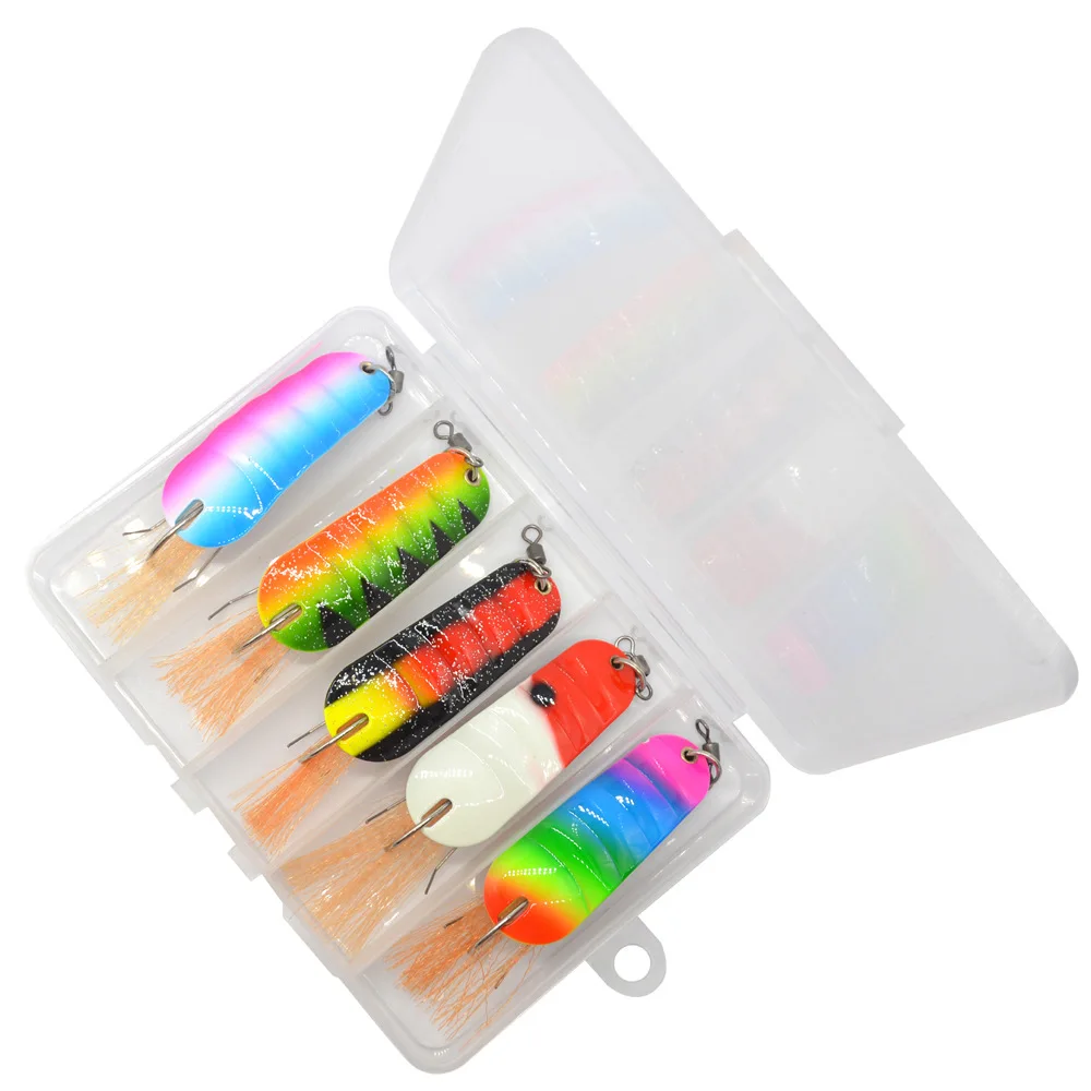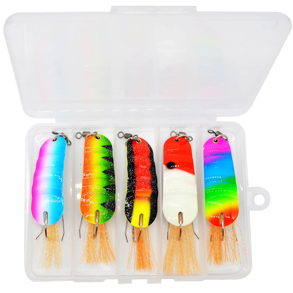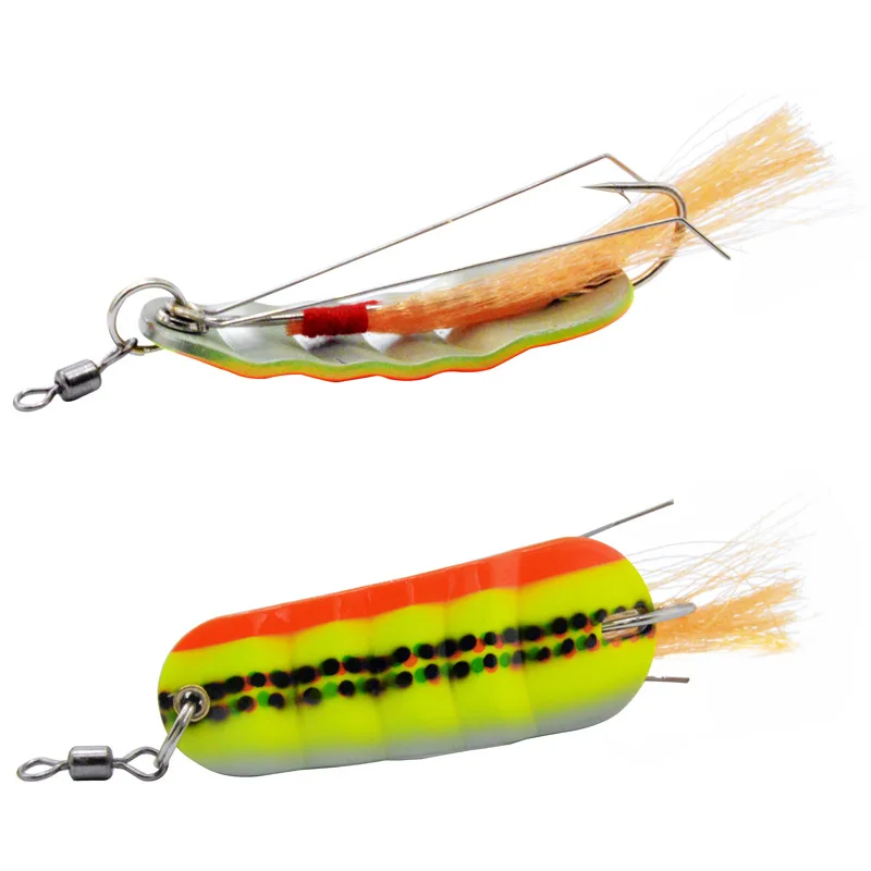 MUKUN Arco Iris 21G/6,2 cm señuelo de pesca cuchara Anti-colgante gancho inferior con pluma cebo de pesca cuchara señuelos duros señuelo de Metal