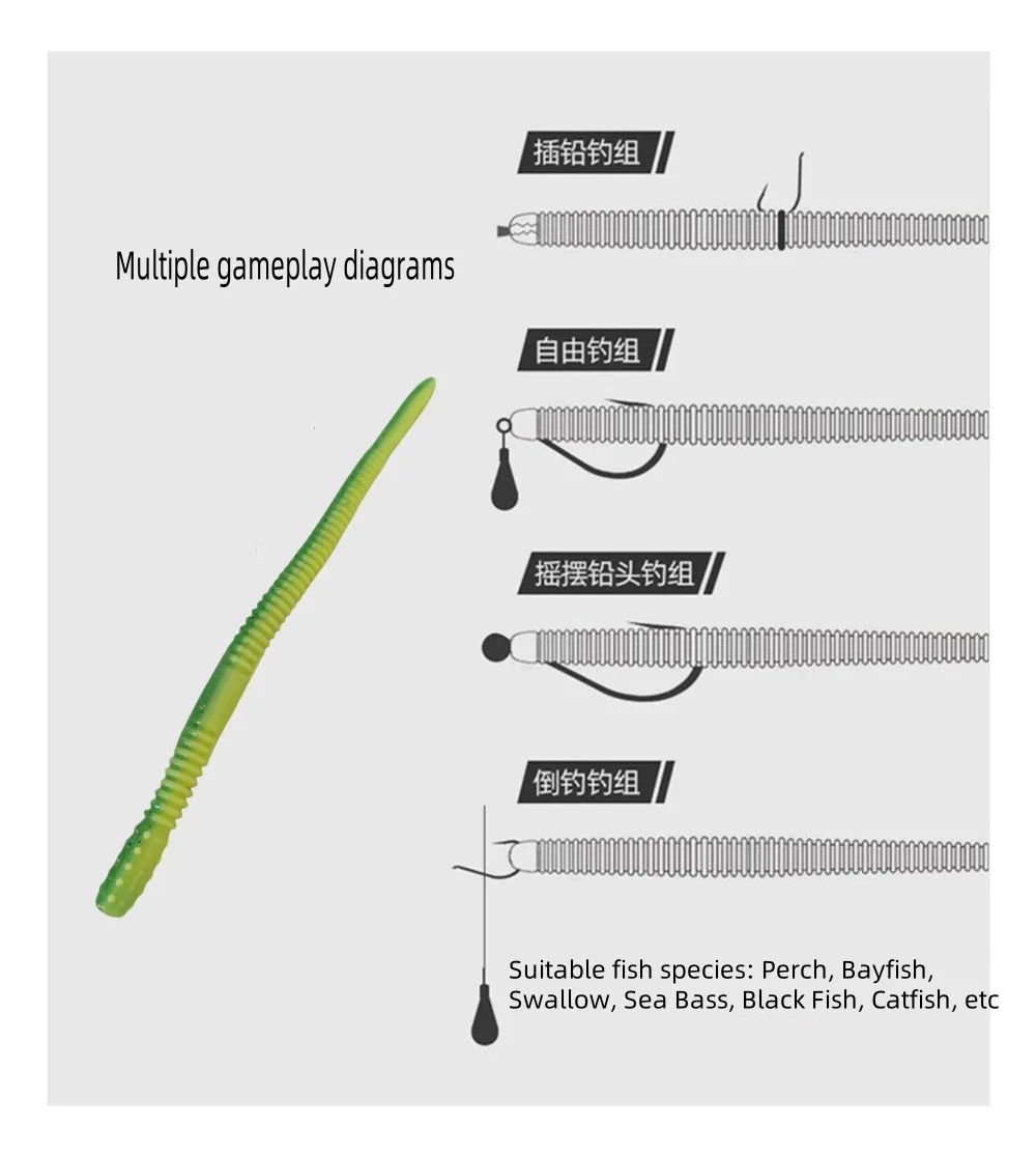 MUKUN-cebo suave de silicona para truco de gusanos, 10cm/1,85g, 13cm/3,7g, Leurre Souple para todos los peces, Iscas, Señuelos de Pesca artificiales, gusanos en barra