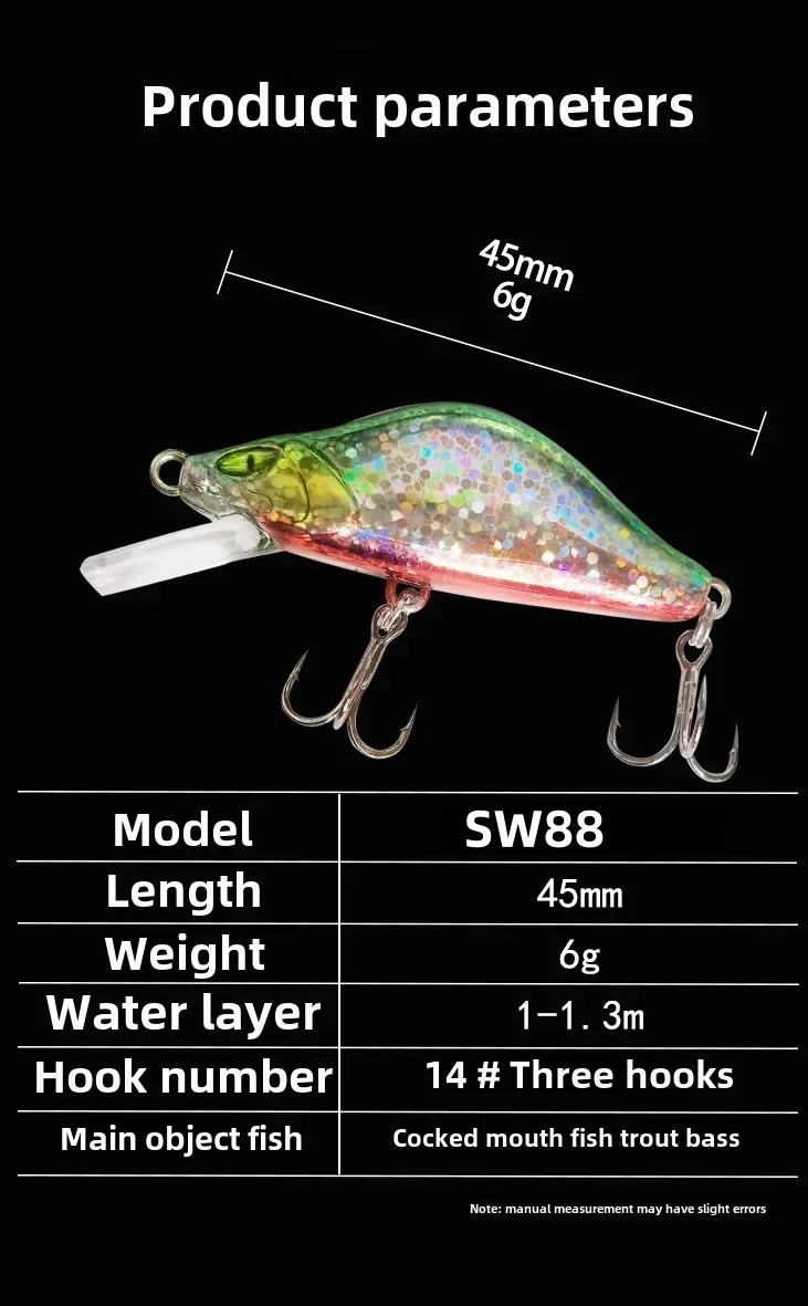 MUKUN cebos duros Minnow Bass 6G 45MM señuelo de pesca señuelos duros cebo de pesca Artificial pesca Wobbler Mini
