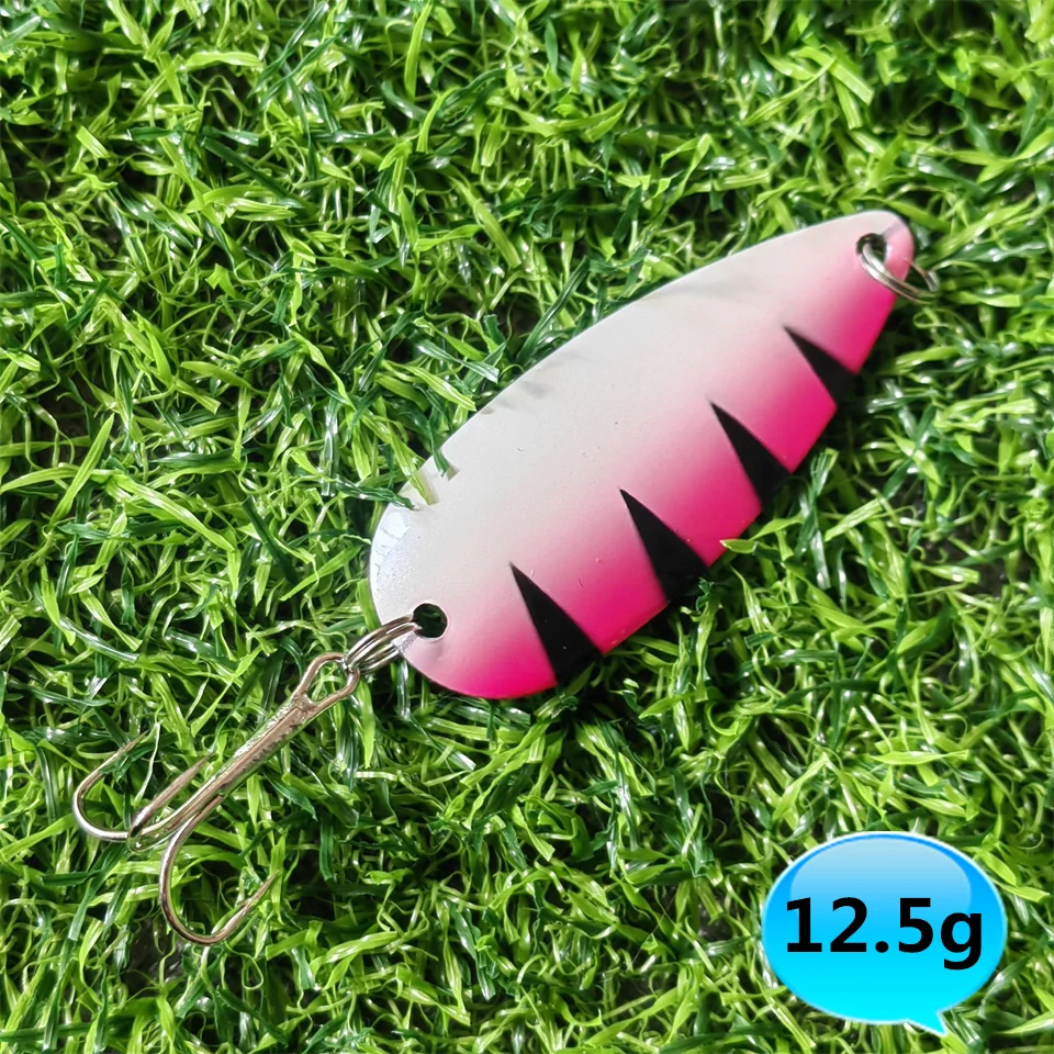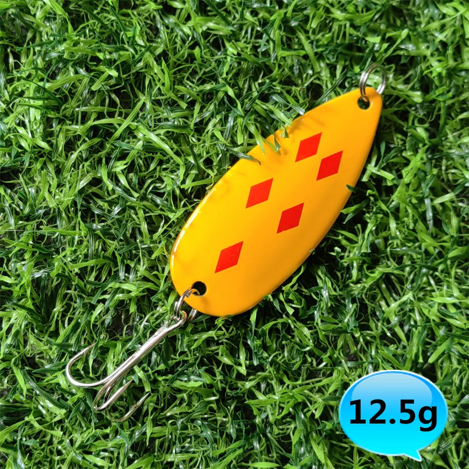 MUKUN-cuchara giratoria de pesca de Metal, 9g, 12,5g, señuelo de pesca de fundición larga, anzuelo triple, peladores de trucha, caballa, bagre, agua salada