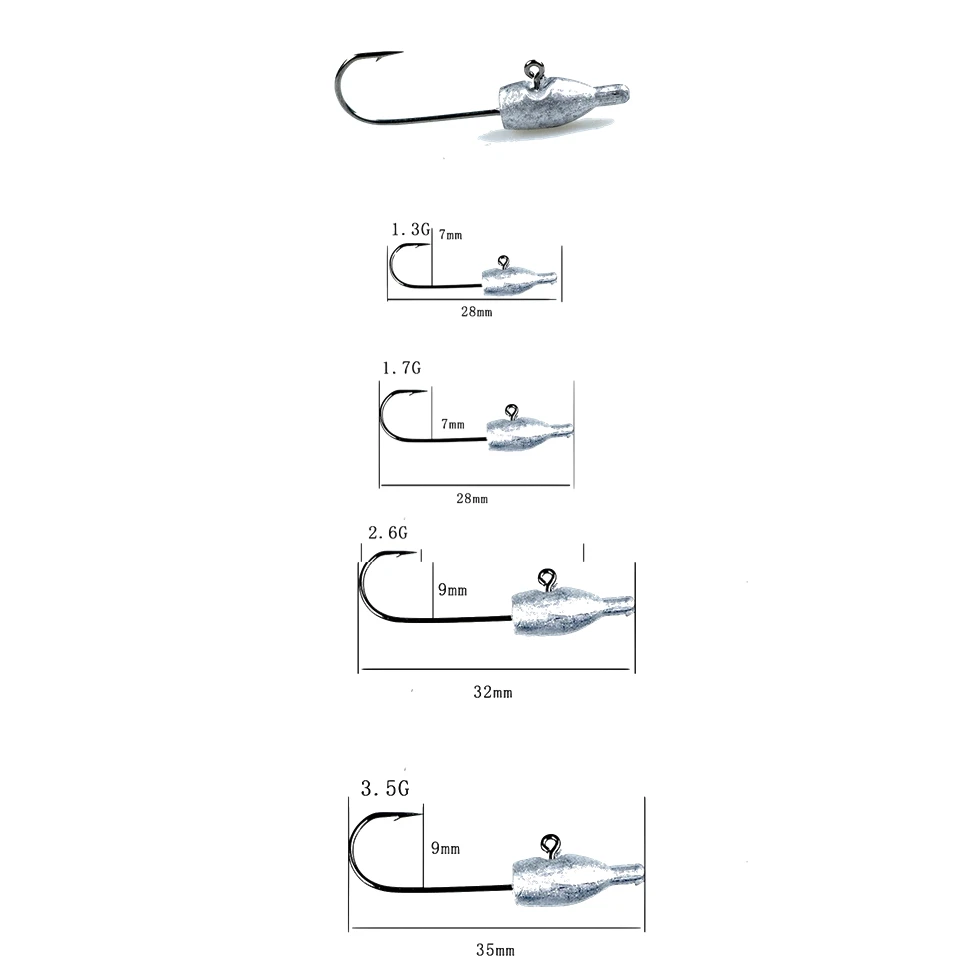 MUKUN Jig Head-anzuelo de gusano AJING, 10 piezas, gancho de púas, trucha, señuelo suave, anzuelo de pesca Rockfish