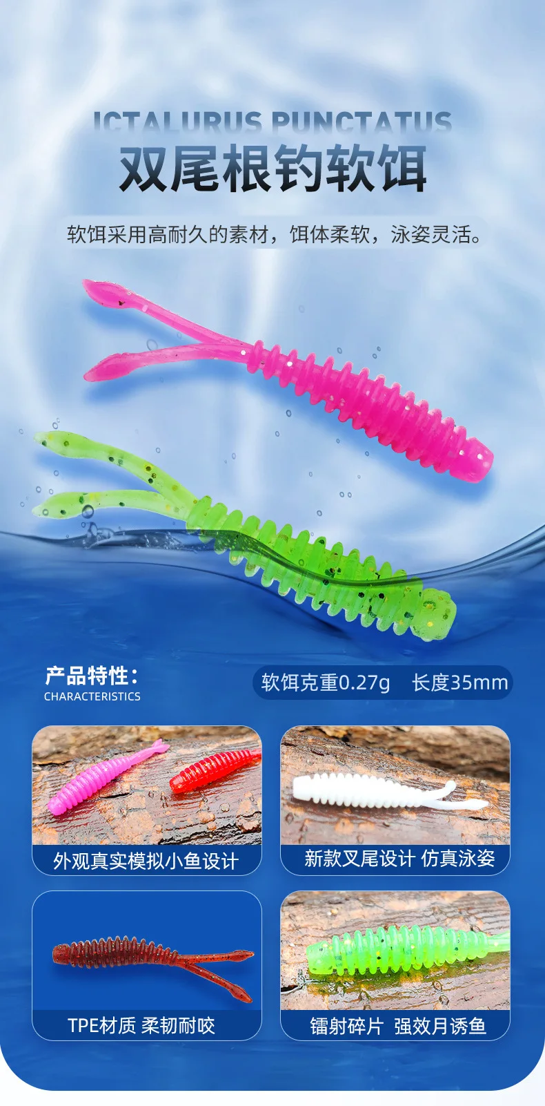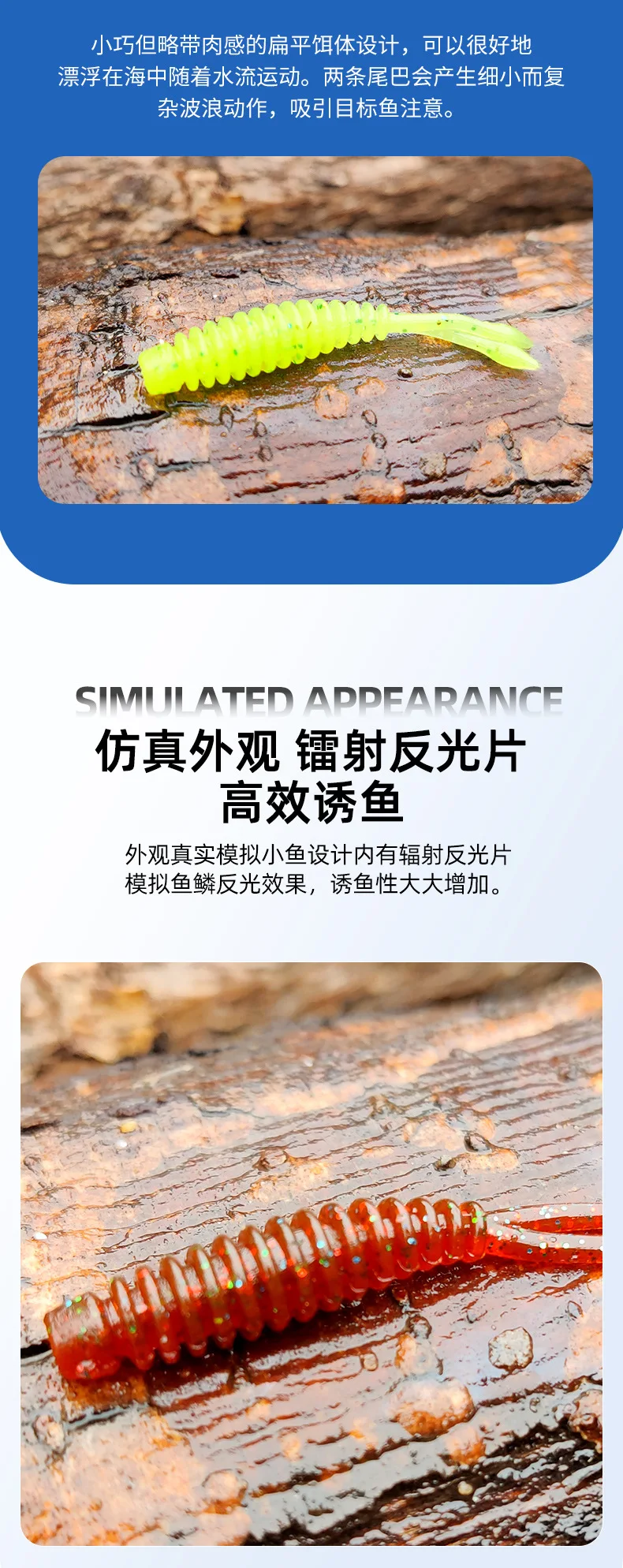 MUKUN-Mini señuelo de pesca Artificial Ajing, 10 piezas, TPE, flotante, 0,27g/35mm, gusano suave, Jigging, Wobbler