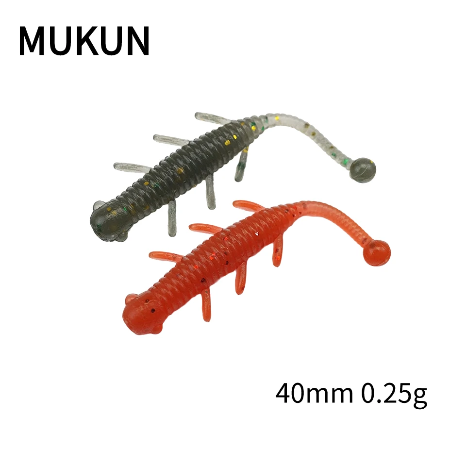 MUKUN-Mini señuelo de pesca de gusano suave, 10 piezas, 0,25g/40mm, cebos artificiales AJING Rockfish, aparejos de pesca de silicona